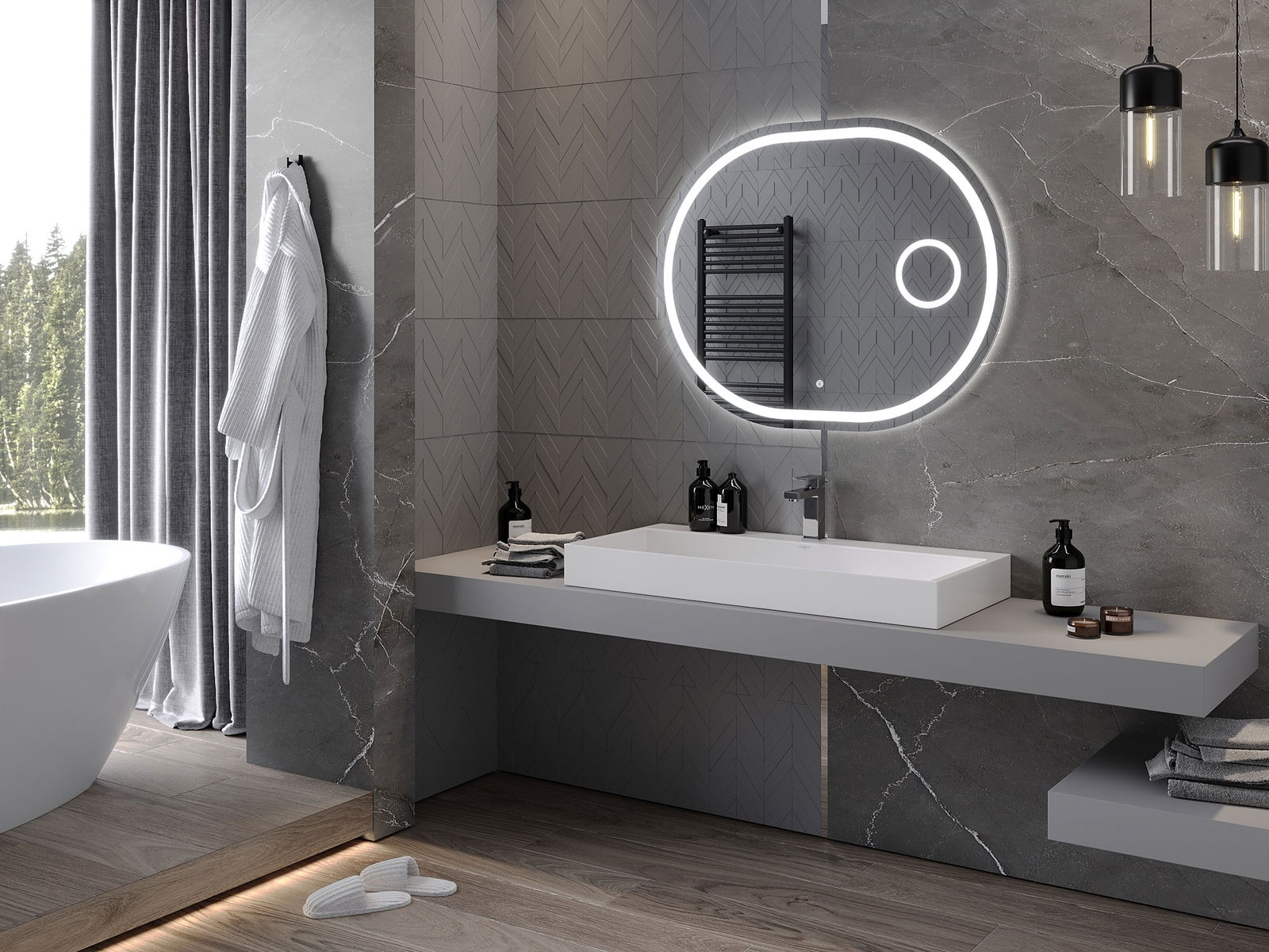 Iluminarea oglinzilor poate fi pornită într -un mod simplu și convenabil, atingând întrerupătorul de pe suprafața oglinzii. Acest lucru permite iluminarea rapidă, fără a fi nevoie să ajungă la comutatorul de iluminare tradițional suplimentar.