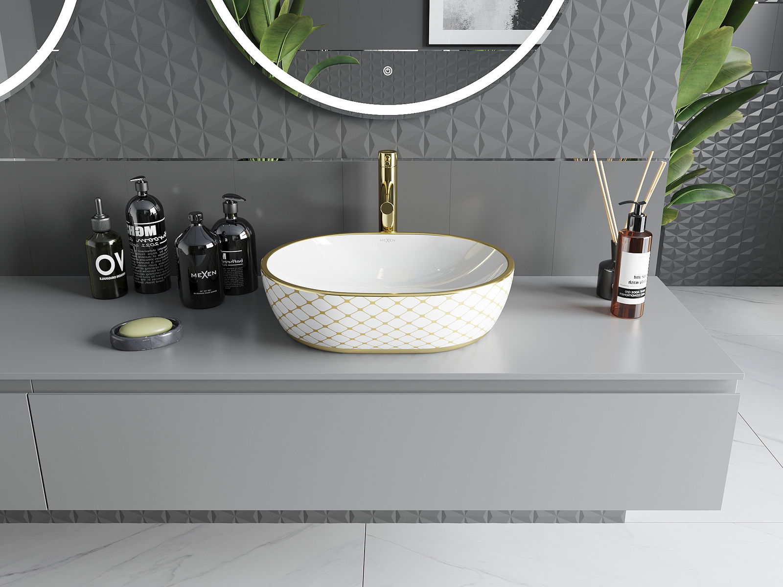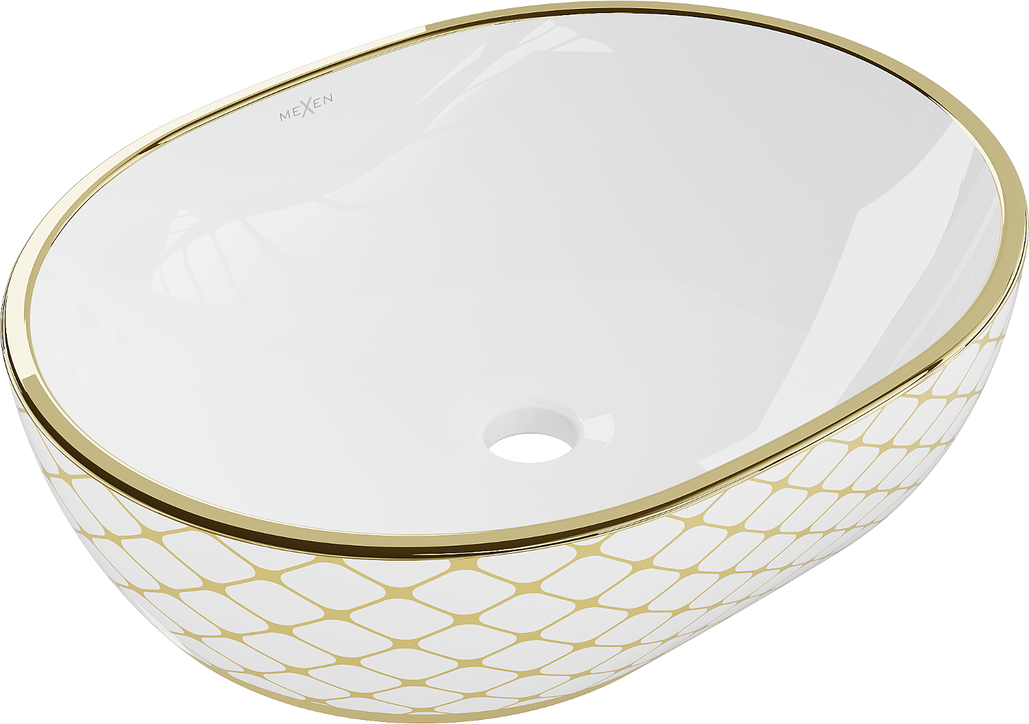 Chiuveta de blat Mexen Viki 48 x 35 cm este combinația ideală de stil și funcționalitate. Fabricată din ceramică sanitară, are o culoare albă elegantă cu model auriu de carouri, ceea ce garantează un aspect estetic fiecărei băi. Datorită stratului protector, suprafața rămâne în stare perfectă mult timp. Forma sa ovală și înălțimea de 14 cm o fac nu doar frumoasă, ci și practică. Calitatea extraordinară a execuției și lipsa orificiilor pentru baterii și preaplin îi conferă un caracter modern.