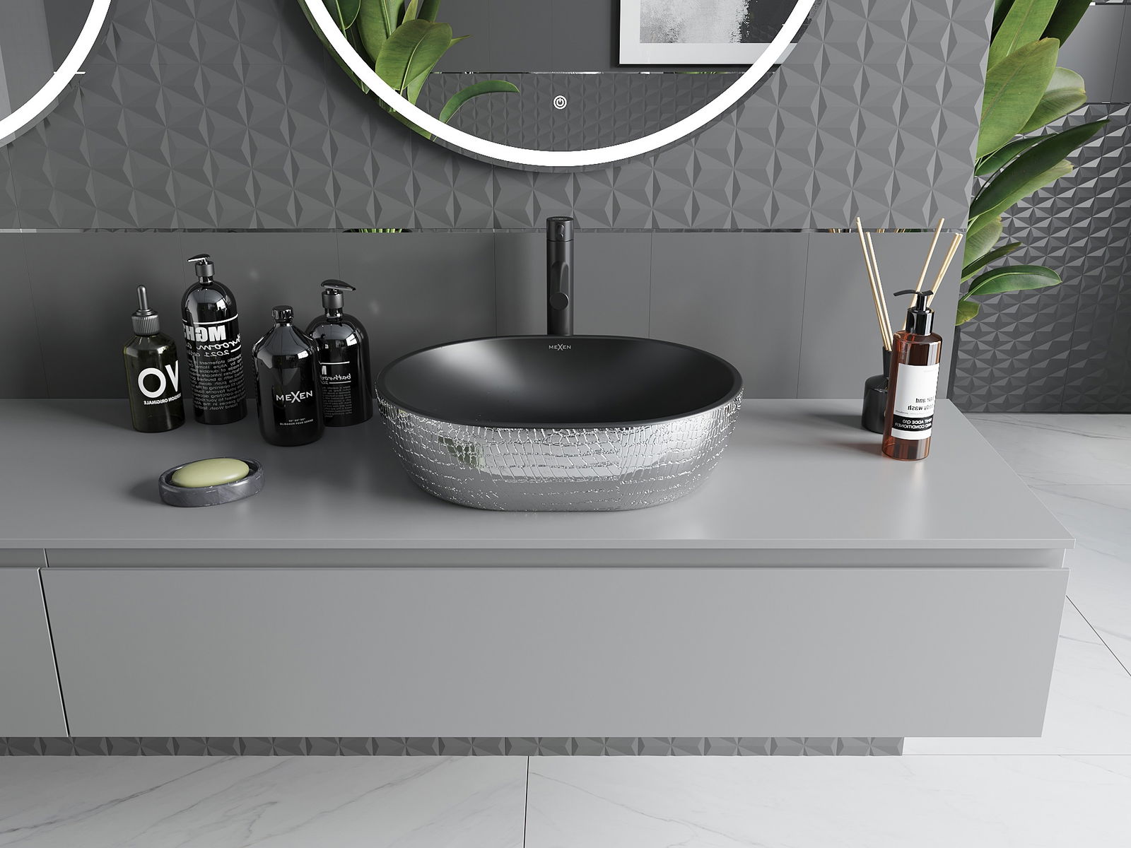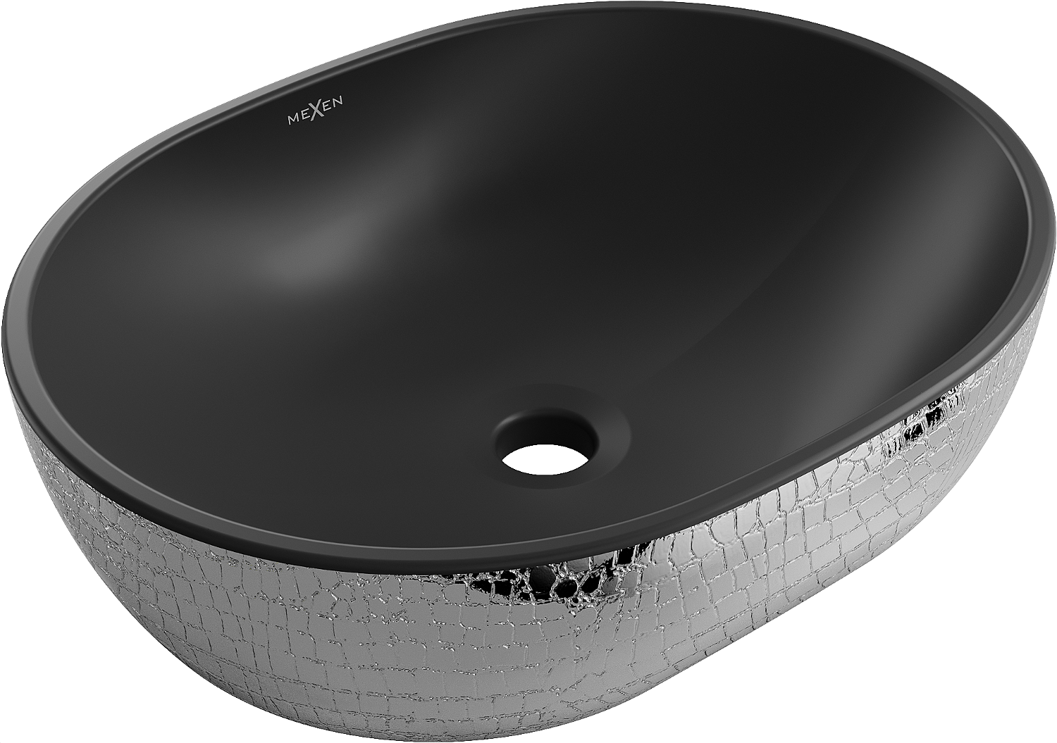 Mexen Viki chiuvetă de baie pe blat 48 x 35 cm, negru mat/pattern argintiu solzi - 21054872