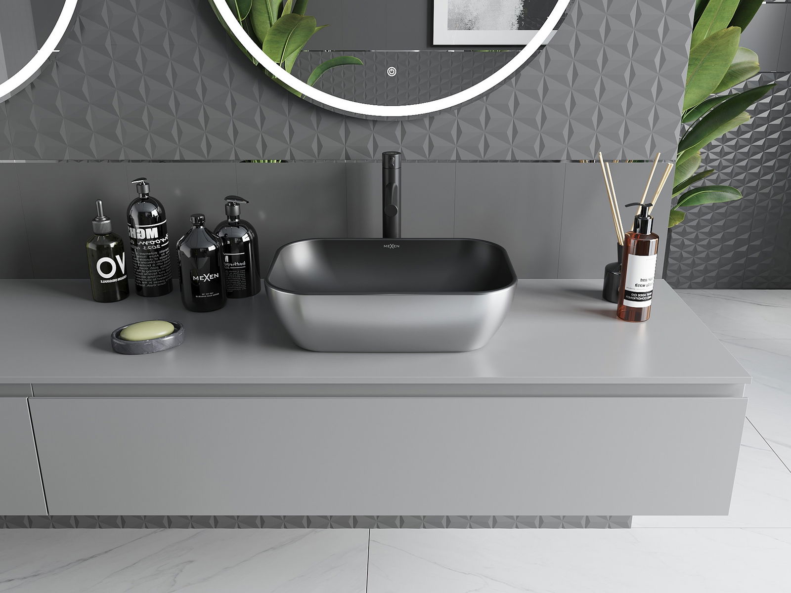 Suprafața mată a ceramicii subliniază perfect natura culorii produsului, oferindu -i un finisaj unic și expresiv. Structura subtilă a ceramicii mate introduce eleganță în baie, creând un spațiu estetic.