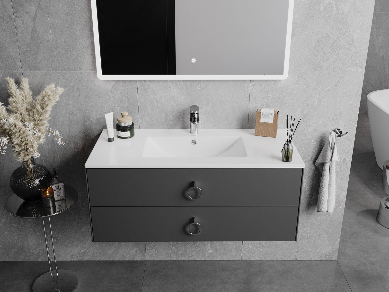 Chiuveta are o gaură în care putem monta bateria. Acest lucru economisește un spațiu valoros în baie și subliniază estetica acesteia. Această soluție vă permite, de asemenea, să păstrați cu ușurință curățarea în jurul chiuvetei.