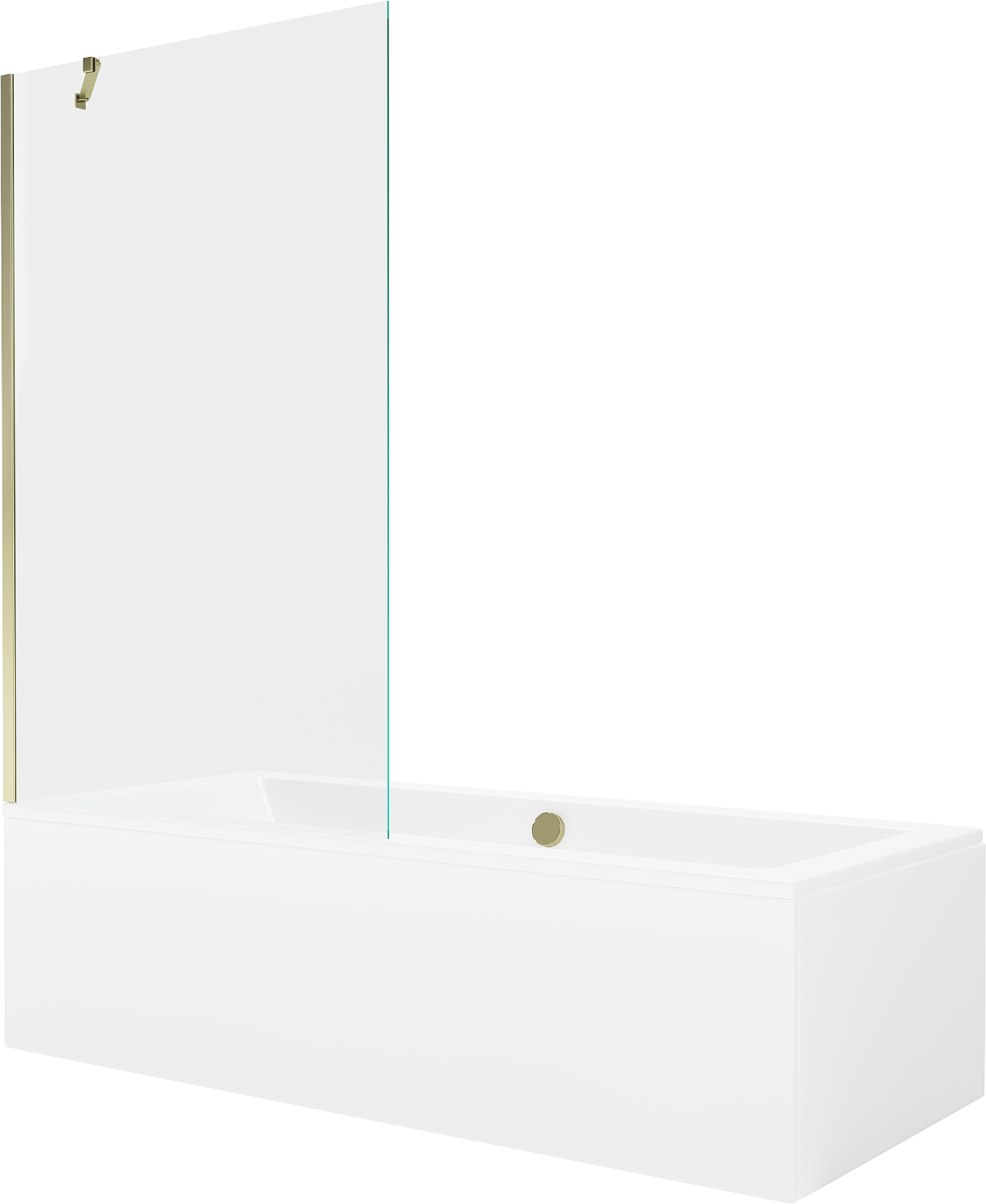 Mexen Cube cadă dreptunghiulară 180 x 80 cm cu carcasă și paravan cu 1 ușă 100 cm, transparent, auriu - 550518080X9510000050