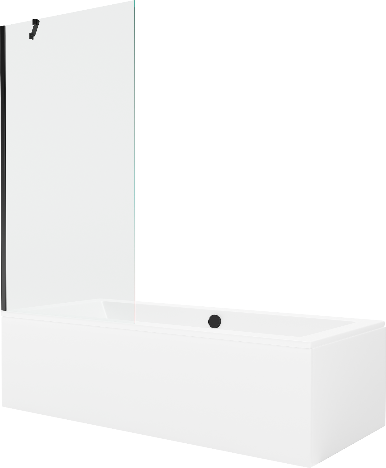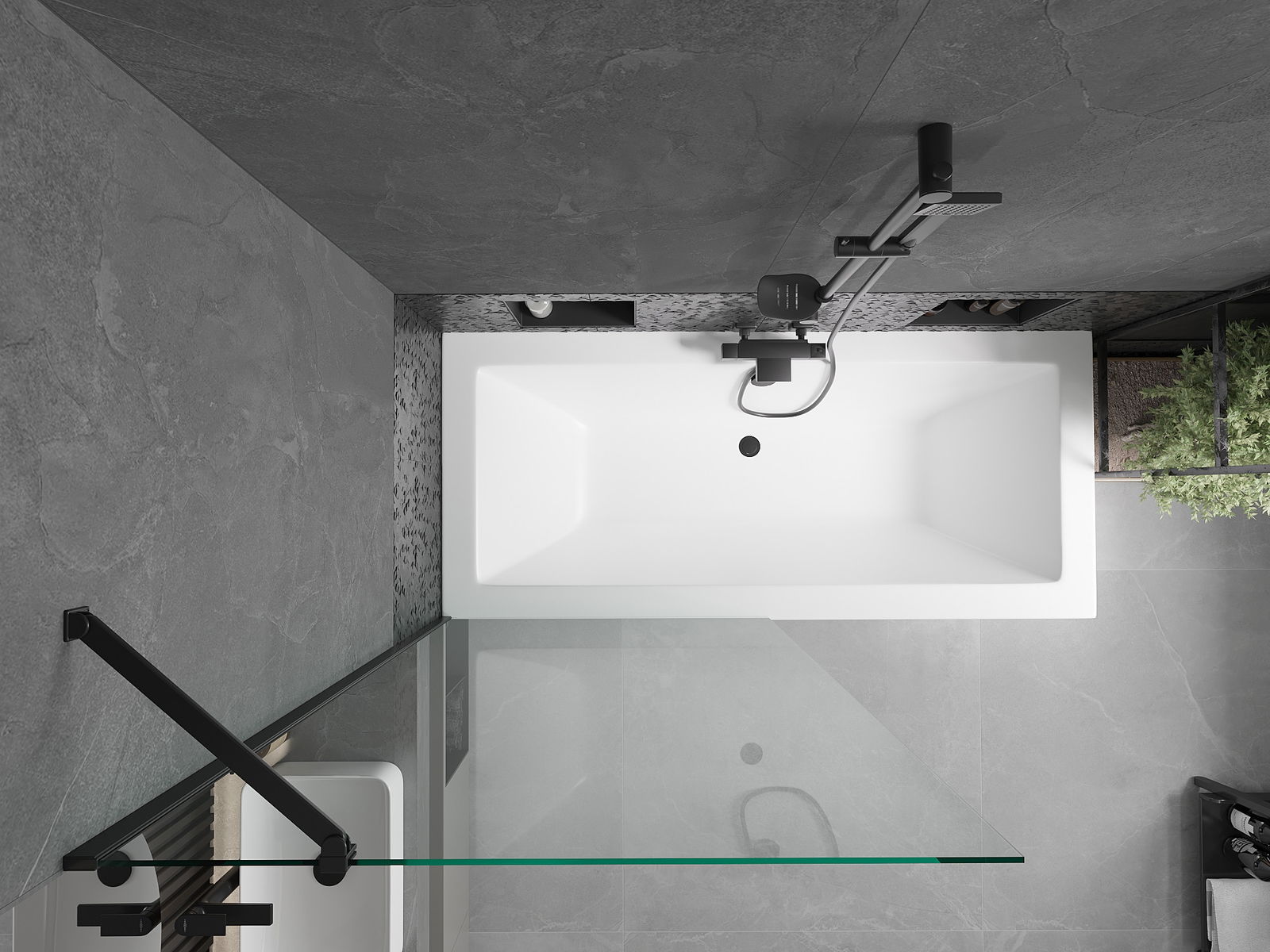 Mexen Cube cadă dreptunghiulară 180 x 80 cm cu carcasă și paravan cu 1 canat de 90 cm, transparent, negru