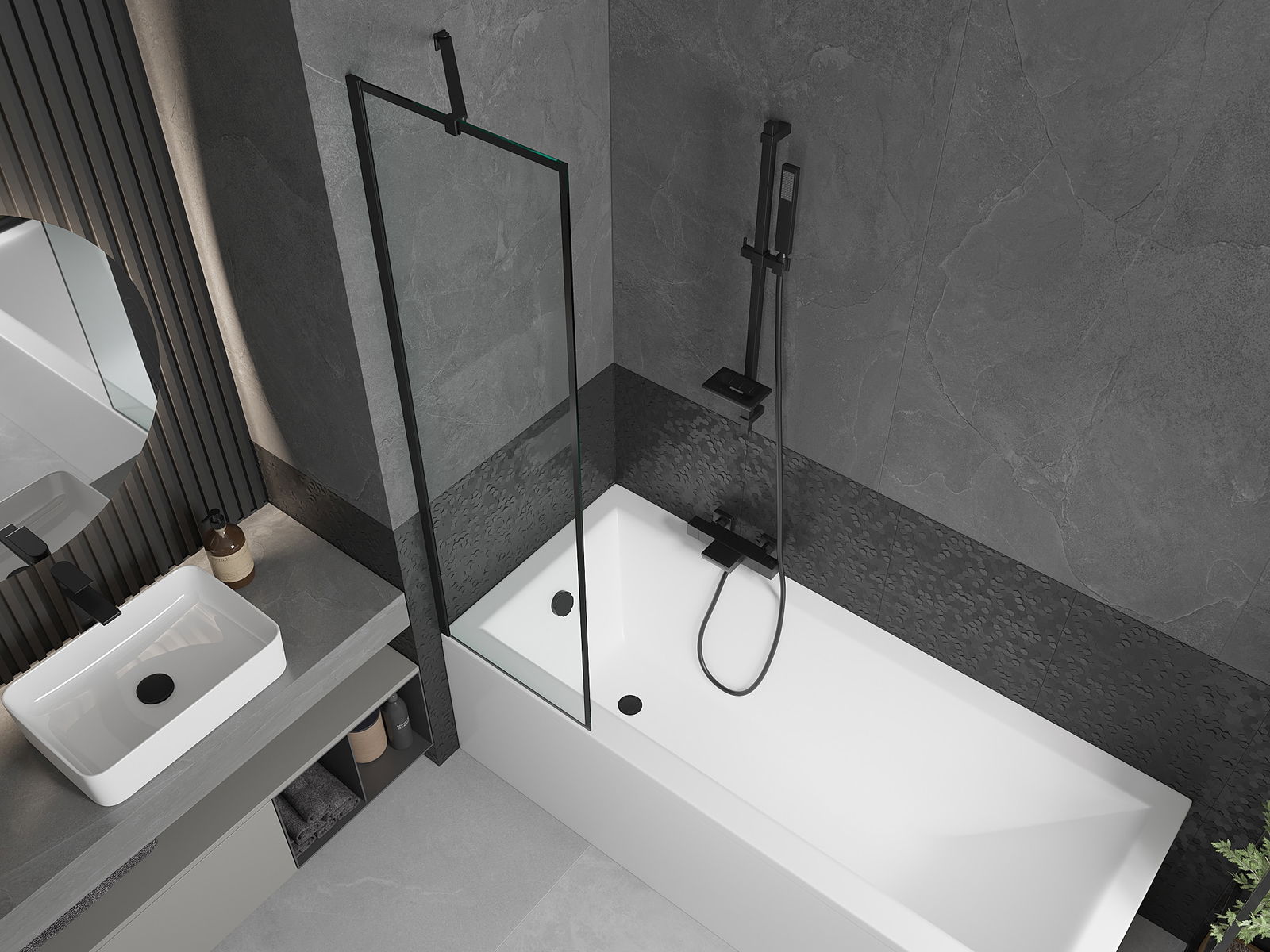 Datorită utilizării unui sistem universal de montare, paravanul poate fi montat pe partea dreaptă sau pe partea stângă, în funcție de necesități. În acest fel, poți proiecta cu ușurință un duș adaptat la spațiul băii.