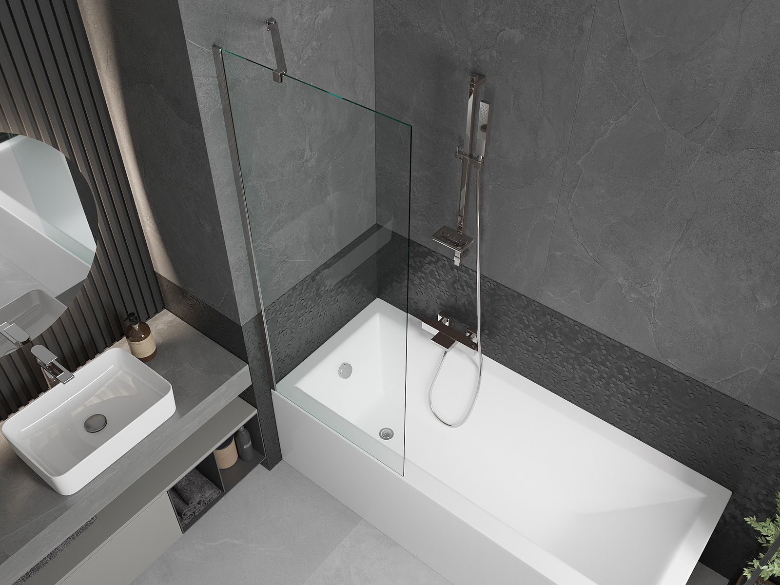 Protecție eficientă împotriva vărsării apei în timpul scăldării. Ecranul are sigilii care se adaptează perfect la sticla din sticlă și marginea carii. O soluție funcțională care asigură siguranță și întreținere ușoară.