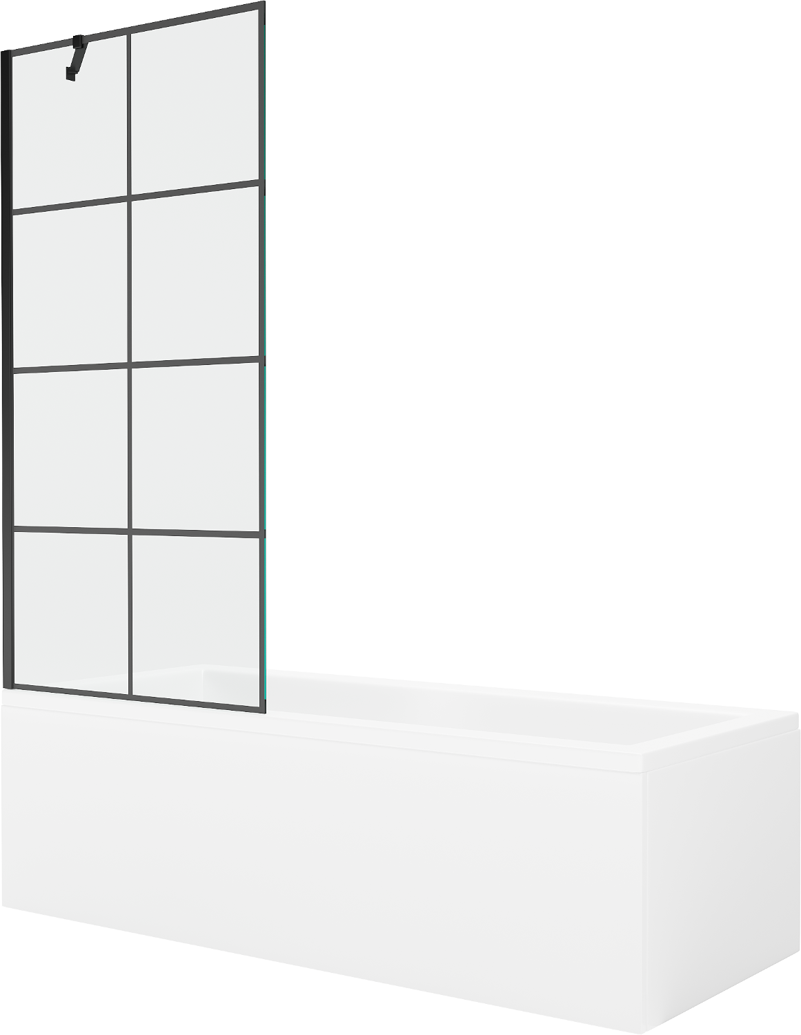 Mexen Cubik cadă dreptunghiulară 170 x 70 cm cu carcasă și paravan cu 1 canat 80 cm, model negru - 550317070X9508007077
