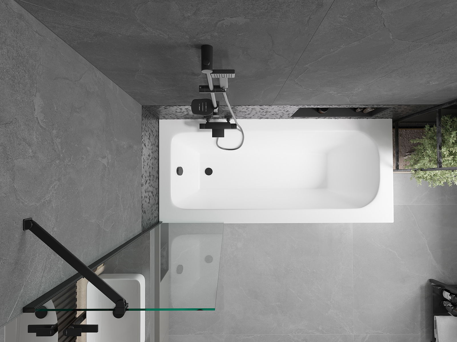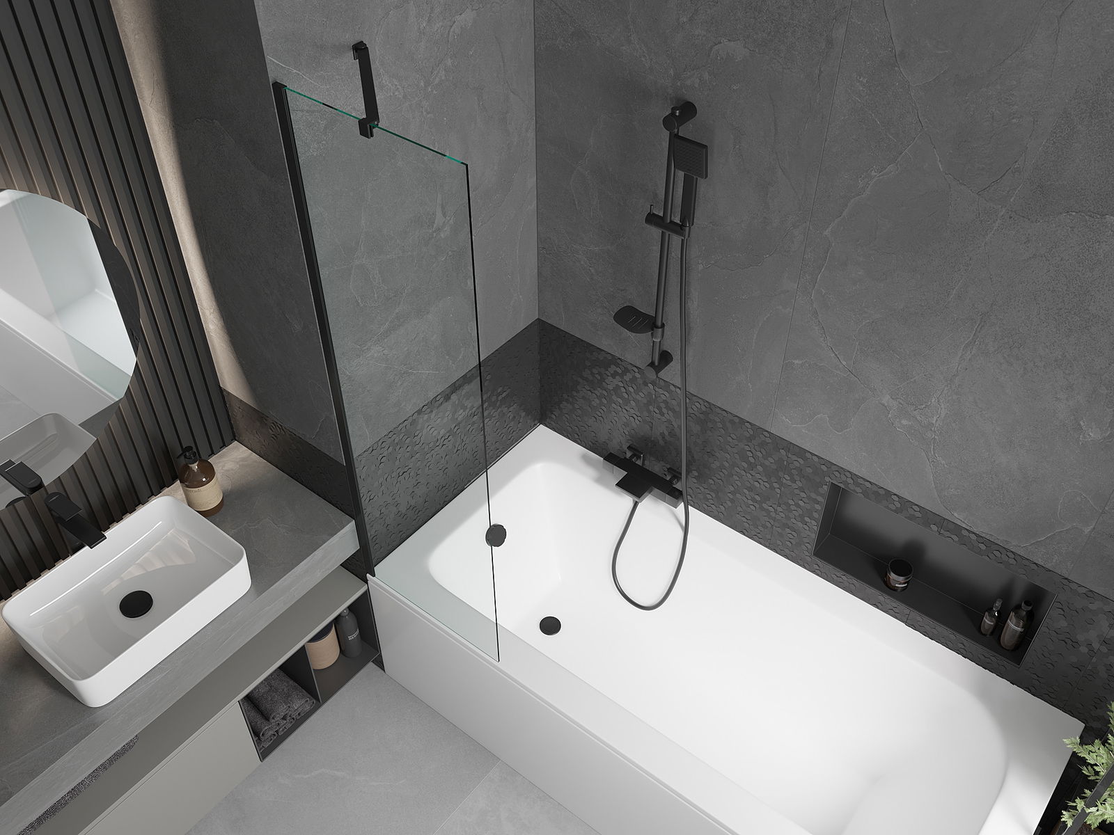 Mexen Vega cadă dreptunghiulară 150 x 70 cm cu panou și paravan cu 1 panou de 50 cm, transparent, negru