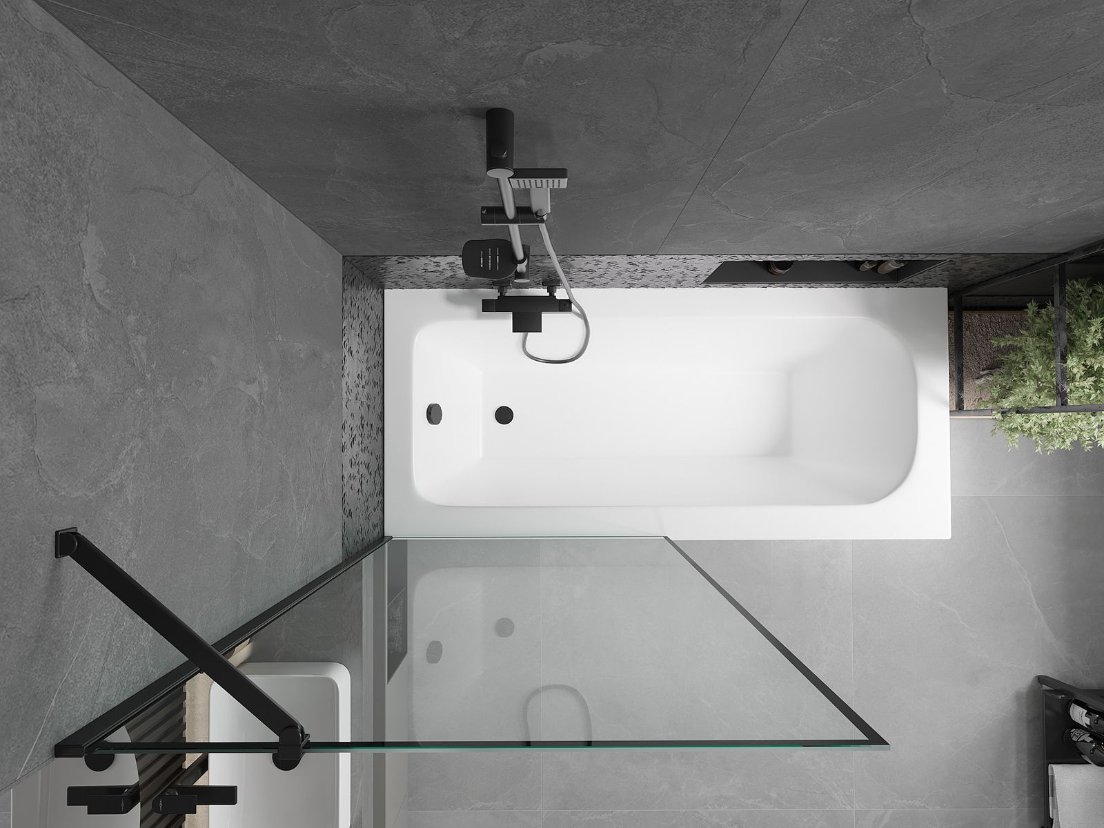 Mexen Vega cadă dreptunghiulară 150 x 70 cm cu carcasa și paravanul cu 1 ușă de 90 cm, model negru - 550115070X9509007070