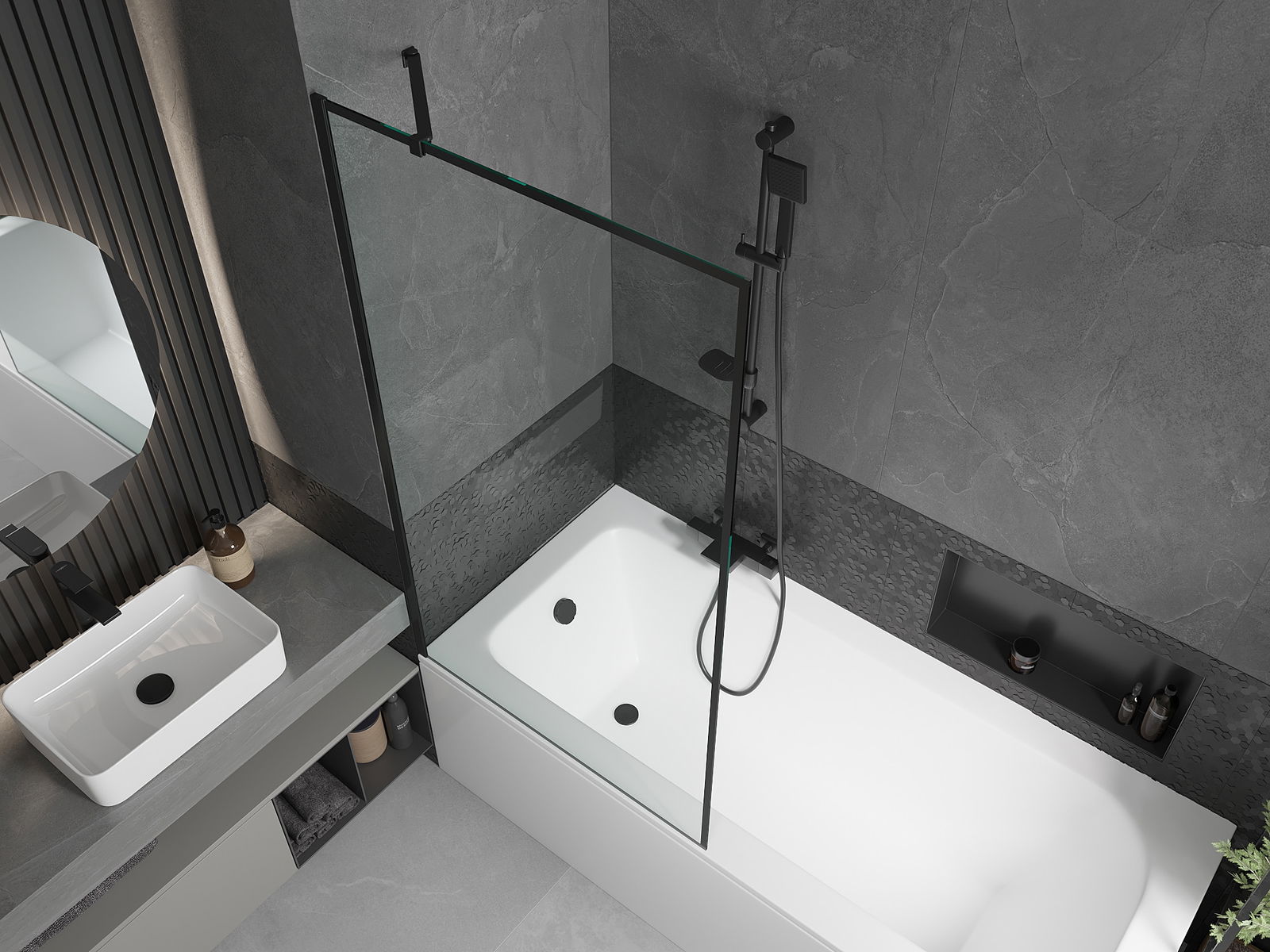 O protecție eficientă împotriva vărsării apei în timpul băii. Paravanul are garnituri care se potrivesc perfect cu suprafața de sticlă și marginea căzii. O soluție funcțională care asigură siguranță și întreținere ușoară a curățeniei.