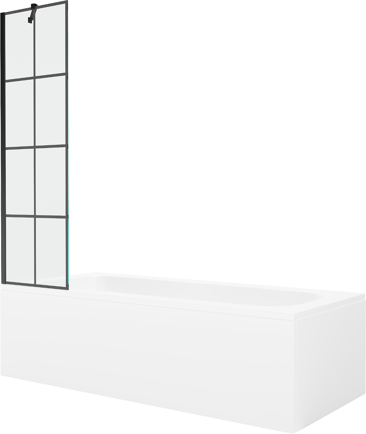 Mexen Vega cadă dreptunghiulară 180 x 80 cm cu panou și paravan cu 1 aripă 50 cm, model negru - 550118080X9505007077
