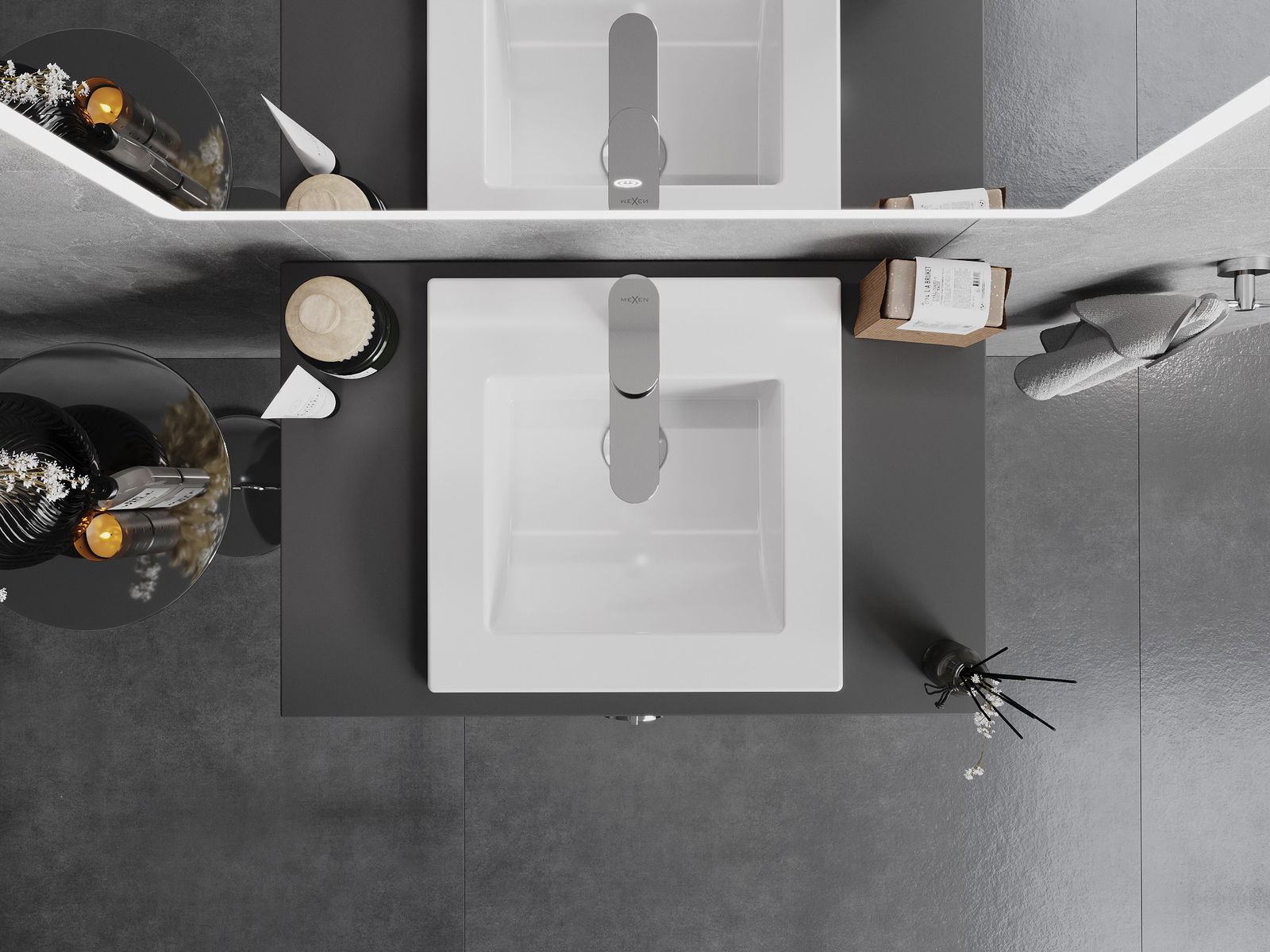 Chiuveta are o gaură în care putem monta bateria. Acest lucru economisește un spațiu valoros în baie și subliniază estetica acesteia. Această soluție vă permite, de asemenea, să păstrați cu ușurință curățarea în jurul chiuvetei.