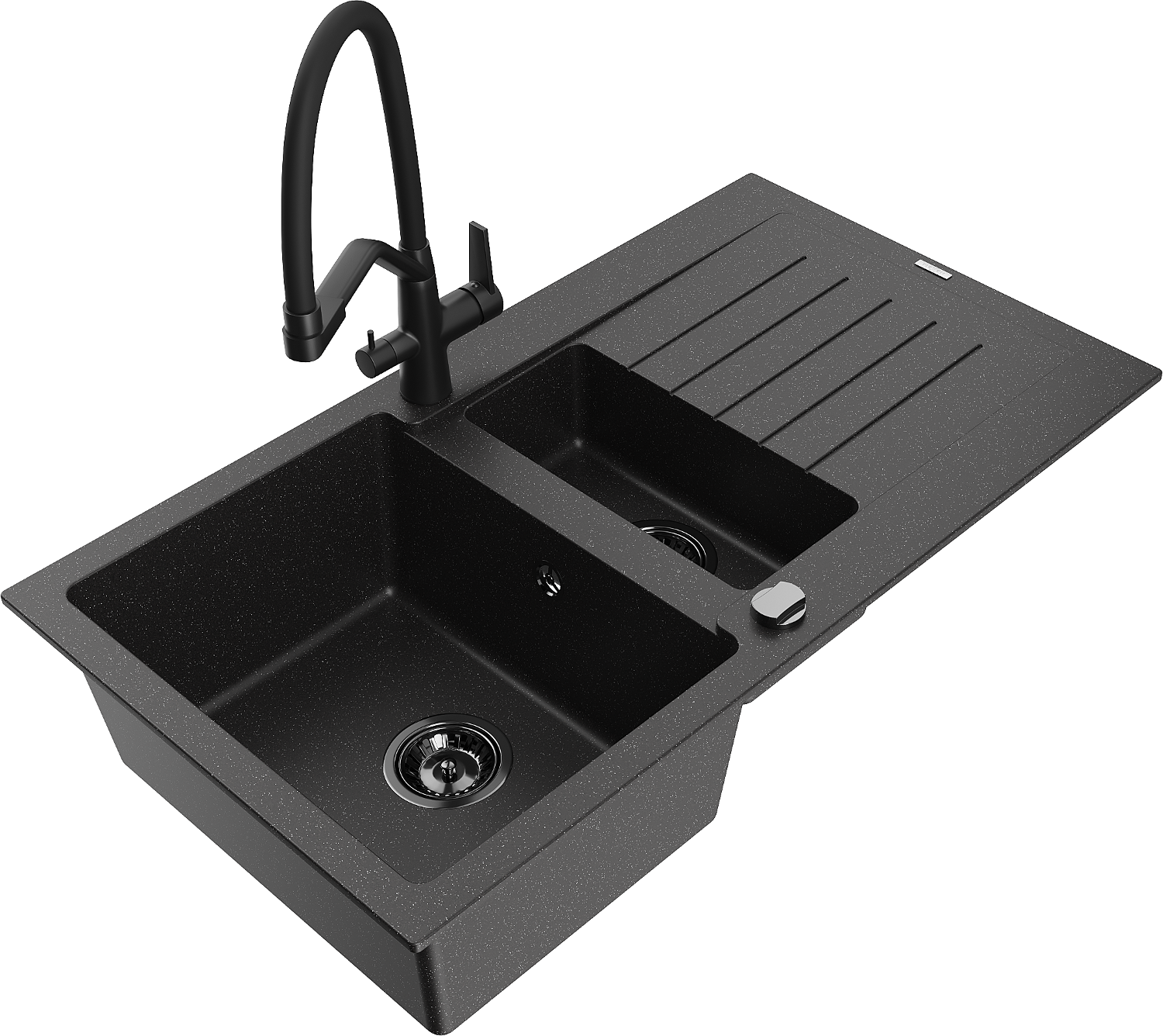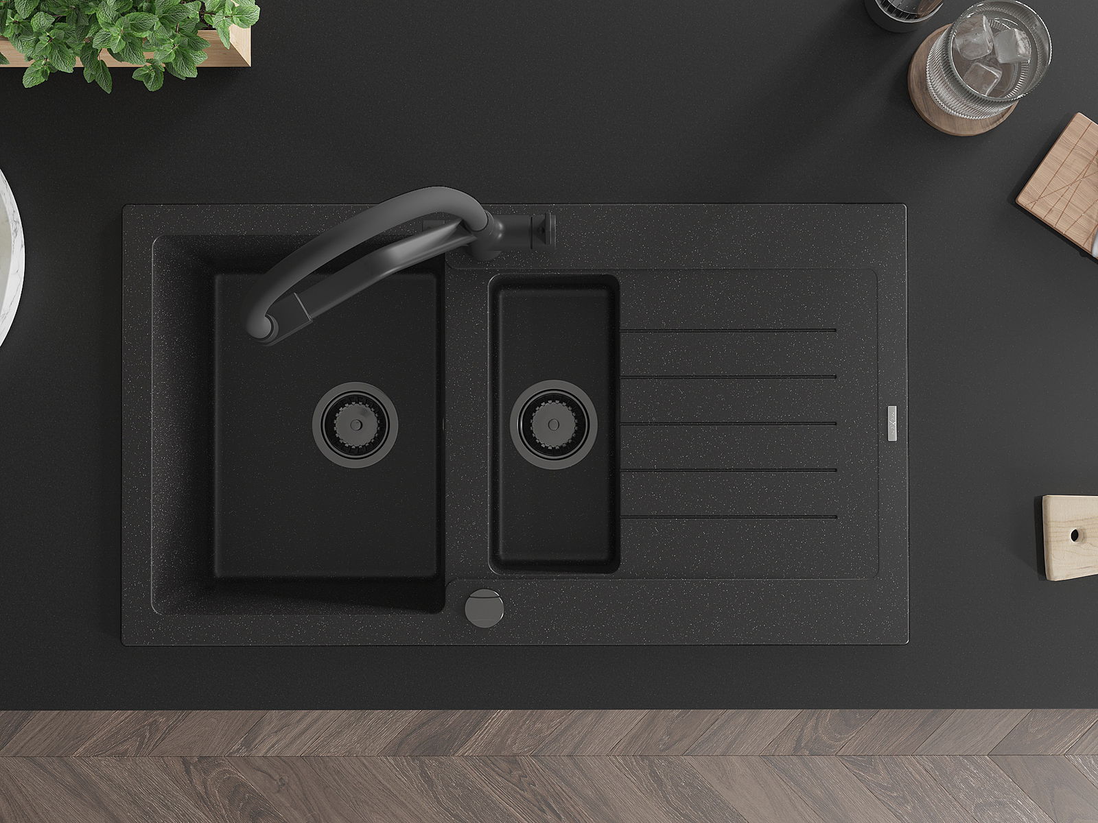 Mexen Matias chiuvetă de bucătărie din granit cu 1,5 compartimente și scurgător și baterie de bucătărie Duo,