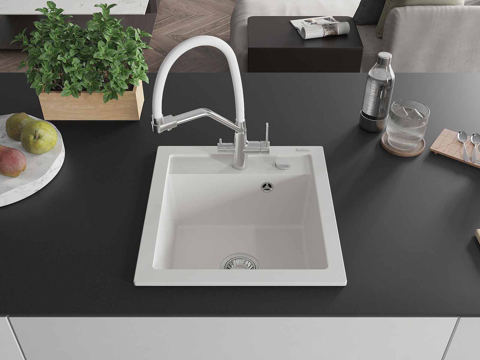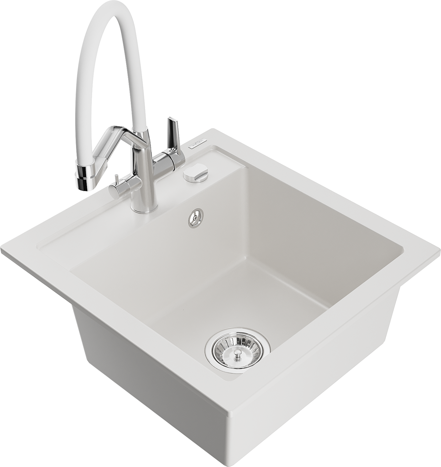 Mexen Vito chiuveta de bucătărie din granit cu 1 compartiment și baterie Duo, alb - 6503-20-671701-02