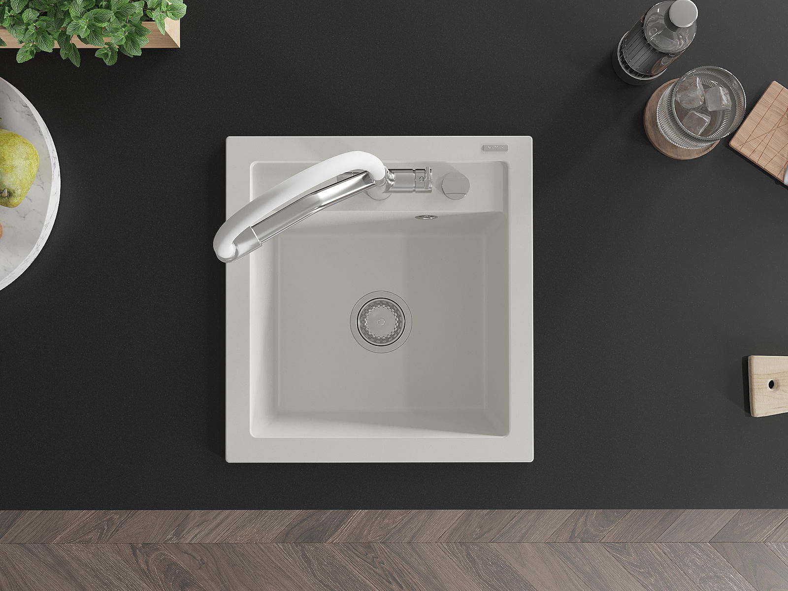 Suprafața chiuvetei este rezistentă la pete și decolorarea, datorită căreia este ușor de curățat și își păstrează culoarea mult timp. Estetică și practic completarea fiecărei bucătării.