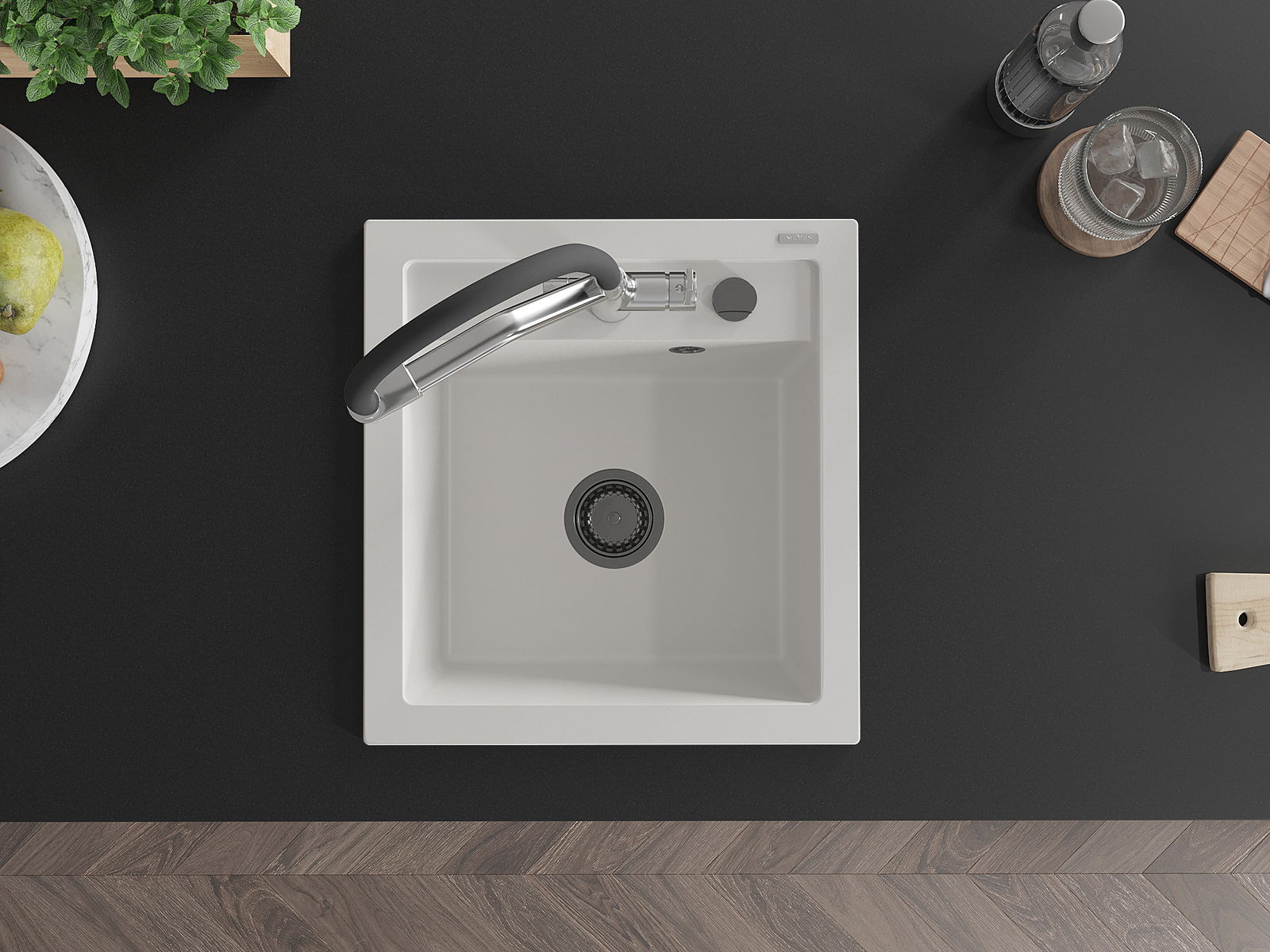 Suprafața chiuvetei este rezistentă la pete și decolorarea, datorită căreia este ușor de curățat și își păstrează culoarea mult timp. Estetică și practic completarea fiecărei bucătării.