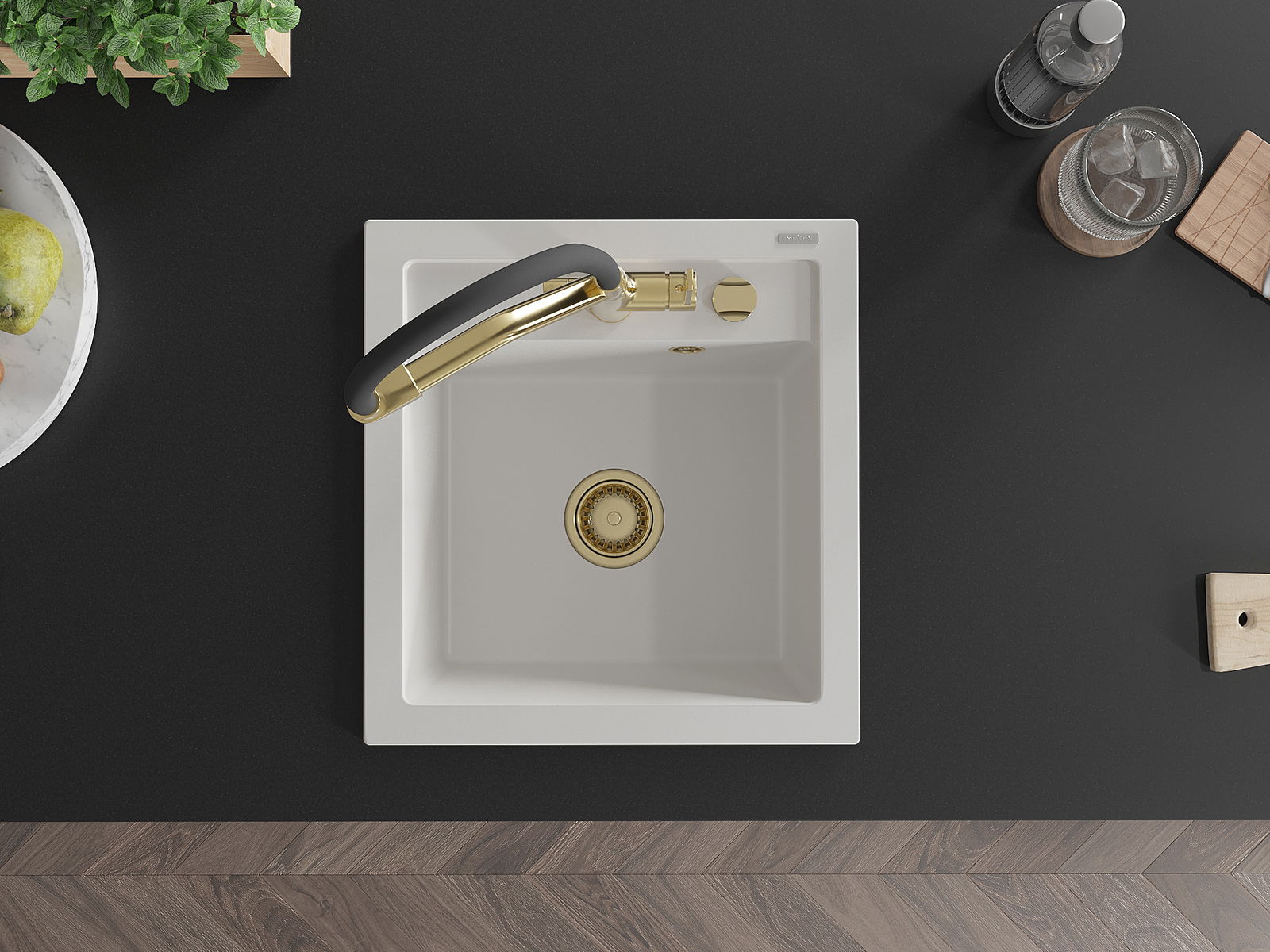 Chiuveta are o gaură prezentată cu un diametru de 35 mm pentru auto -burst. Poate fi folosit, printre altele Pentru montarea unui distribuitor de lichid care va elimina prezența sticlelor de plastic în bucătărie și îi va oferi un finisaj elegant.