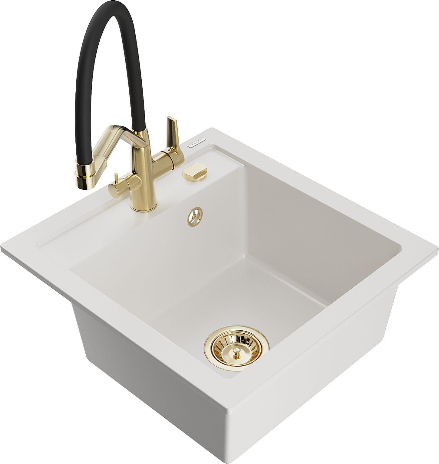 Mexen Vito chiuvetă de granit cu 1 compartiment și baterie de bucătărie Duo, alb - 6503-20-671701-57-G