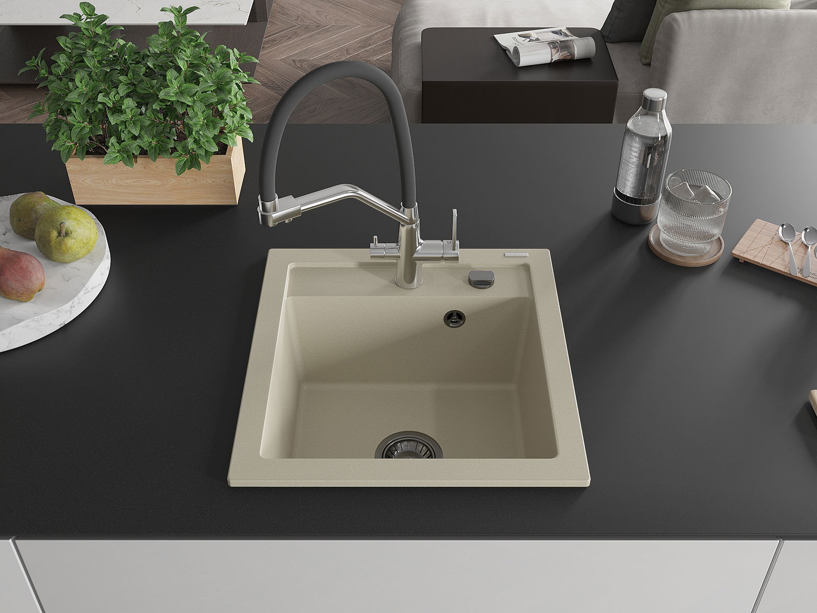 Suprafața chiuvetei este rezistentă la pete și decolorarea, datorită căreia este ușor de curățat și își păstrează culoarea mult timp. Estetică și practic completarea fiecărei bucătării.