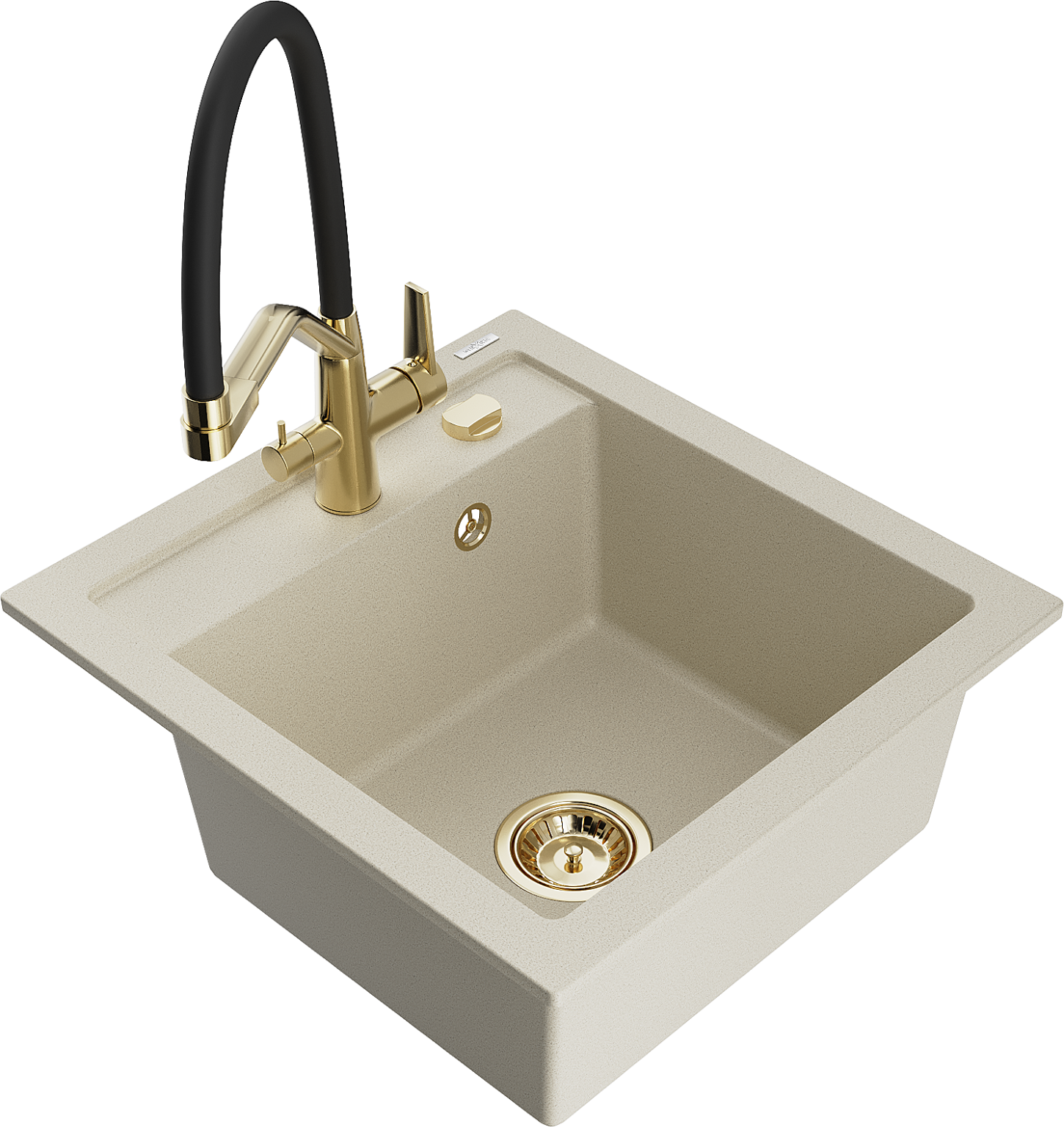 Mexen Vito chiuvetă de bucătărie din granit cu 1 cuvă și baterie de bucătărie Duo, bej - 6503-69-671701-57-G