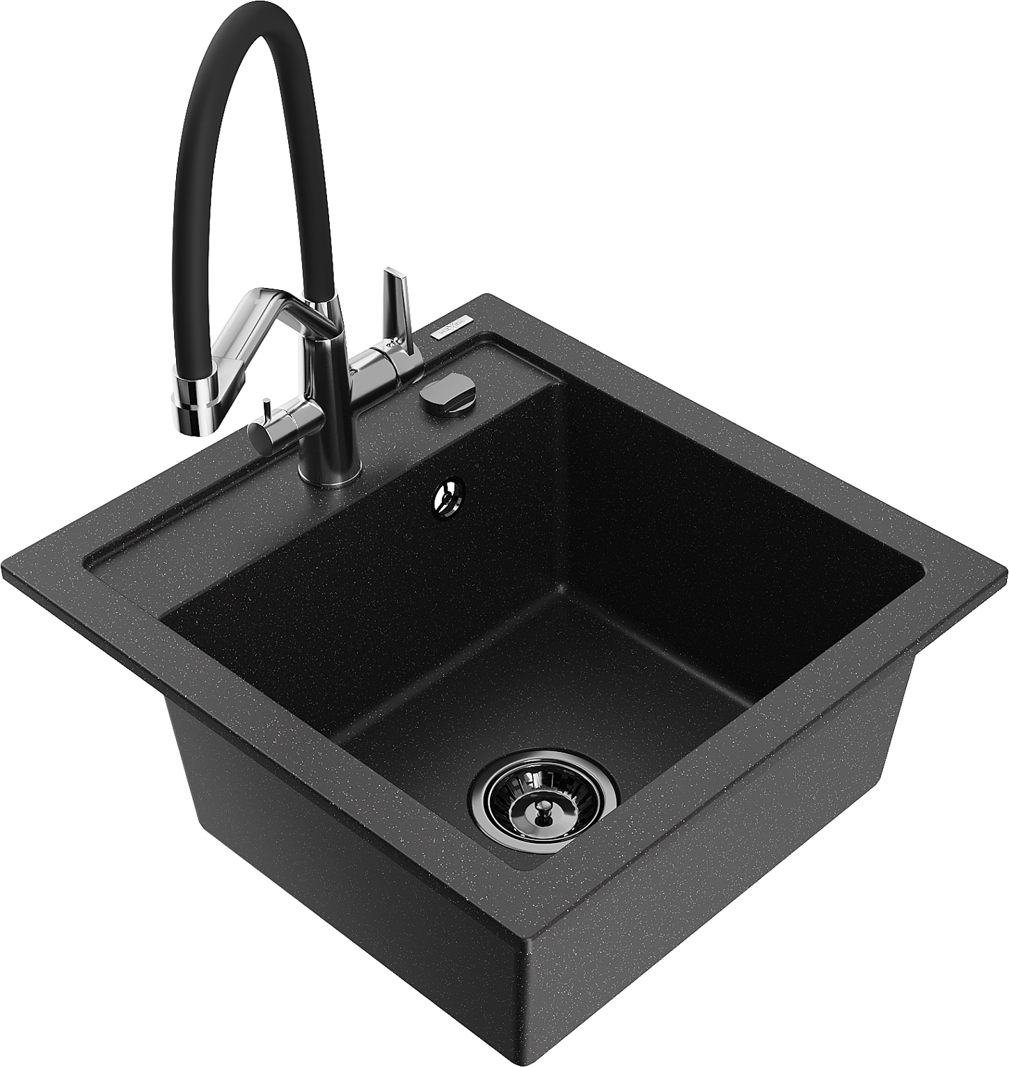 Mexen Vito chiuvetă din granit cu 1 compartiment și baterie de bucătărie Duo, negru/argintiu metalic - 6503-73-671701-07-B