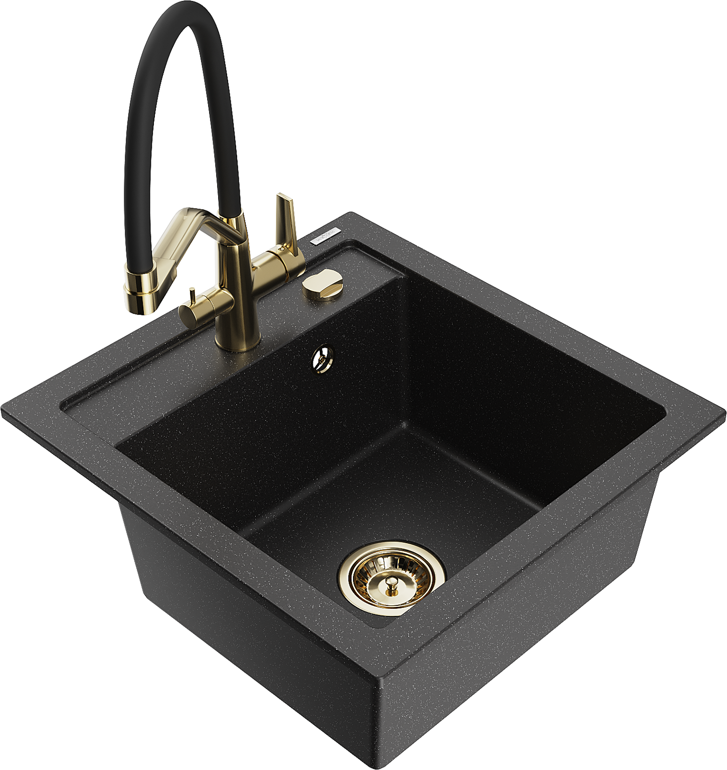 Mexen Vito chiuvetă de granit cu 1 compartiment cu baterie de bucătărie Duo, negru/argintiu metalic - 6503-73-671701-57-G
