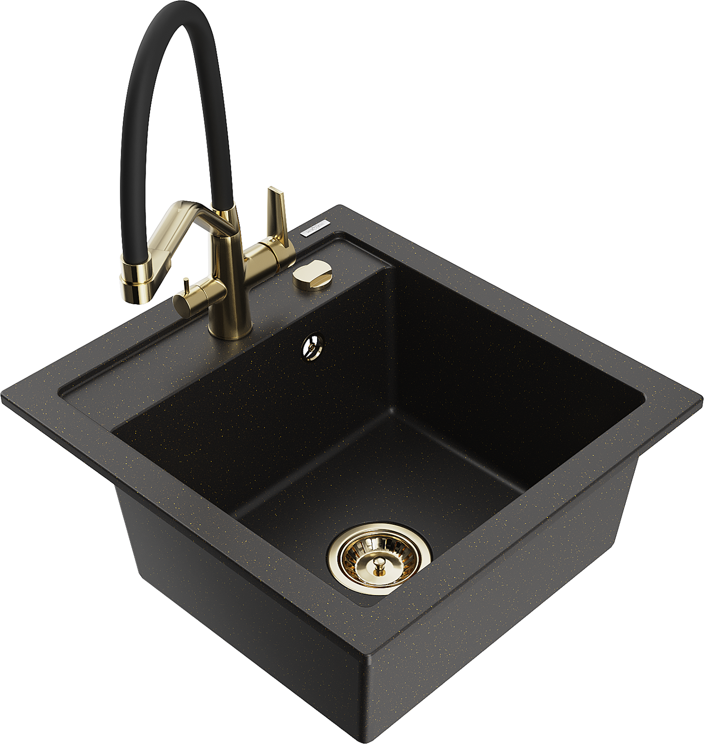 Mexen Vito chiuvetă de bucătărie din granit cu 1 compartiment și baterie Duo, negru/auriu metalizat - 6503-75-671701-57-G