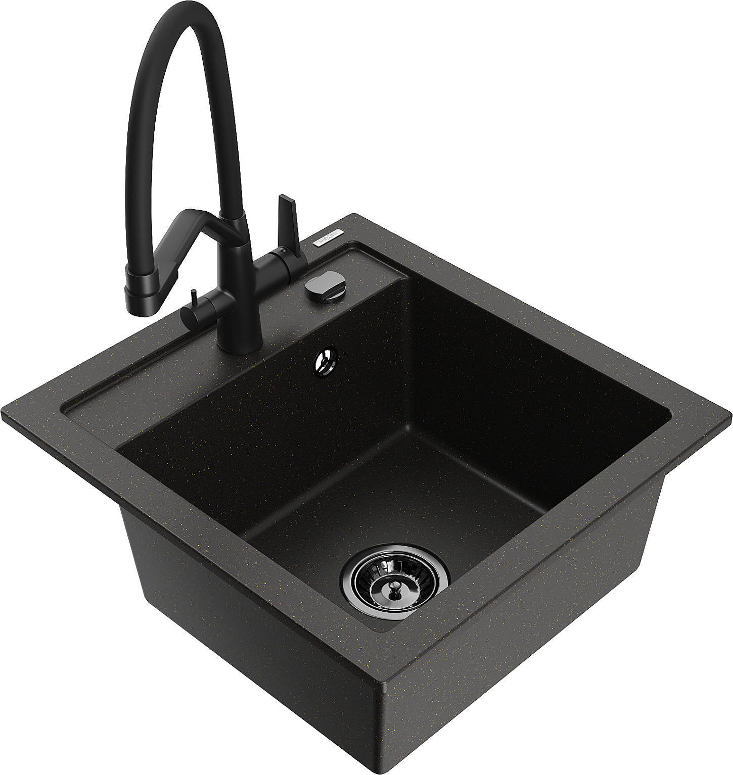 Mexen Vito chiuvetă din granit cu 1 cuvă și baterie de bucătărie Duo, negru/auriu metalizat - 6503-75-671701-70-B