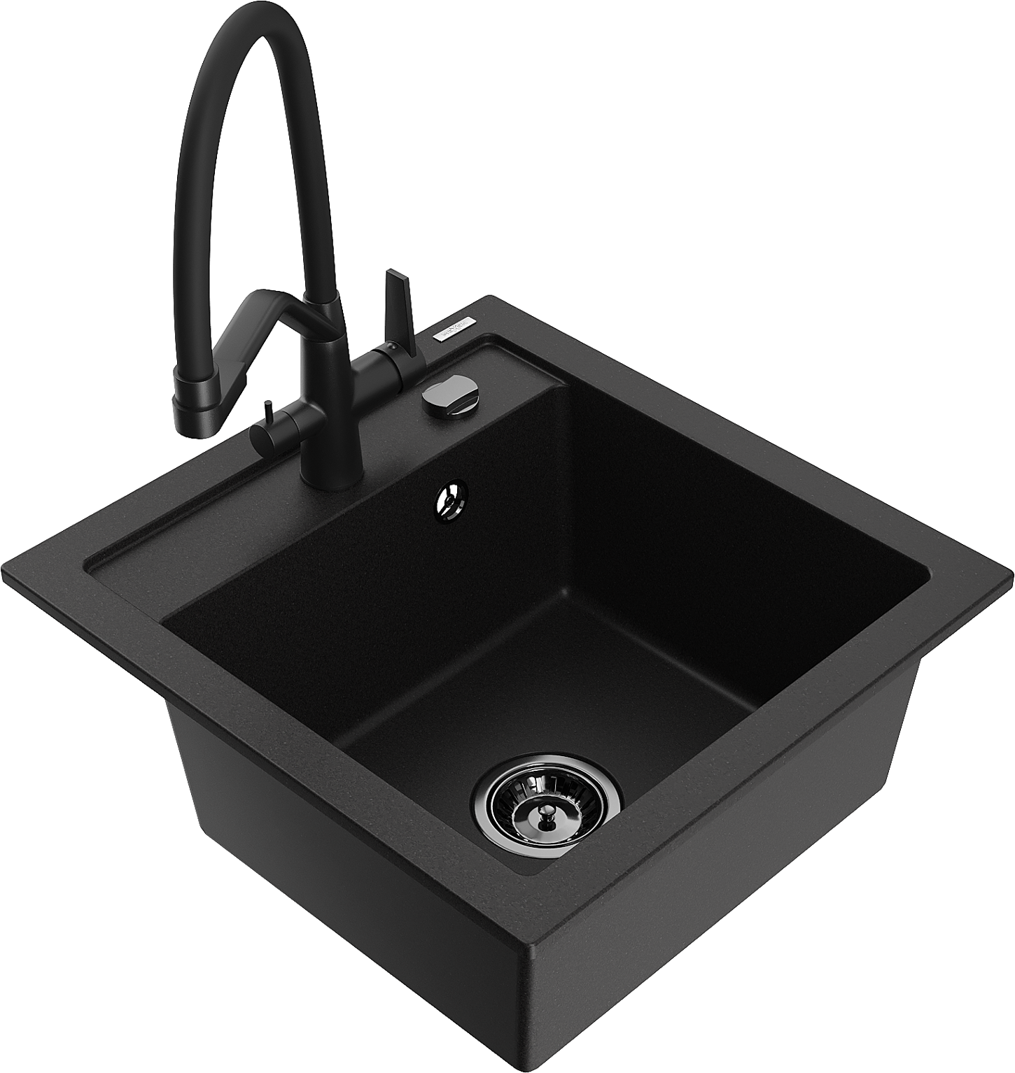 Mexen Vito chiuvetă de bucătărie din granit cu 1 compartiment și baterie de bucătărie Duo, neagră - 6503-77-671701-70-B