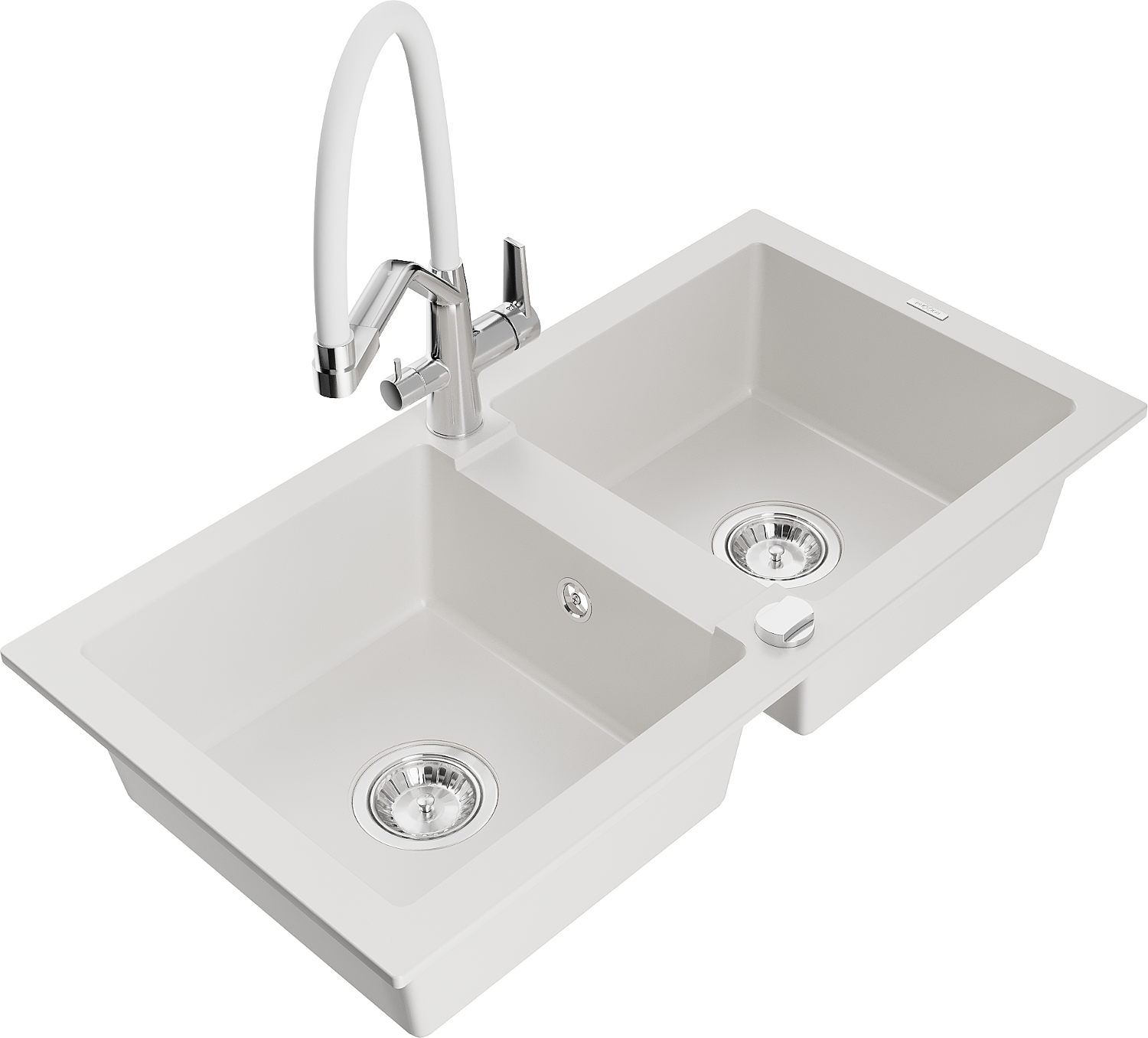 Mexen Mario chiuvetă de granit cu 2 compartimente și baterie de bucătărie Duo, alb - 6504-20-671701-02