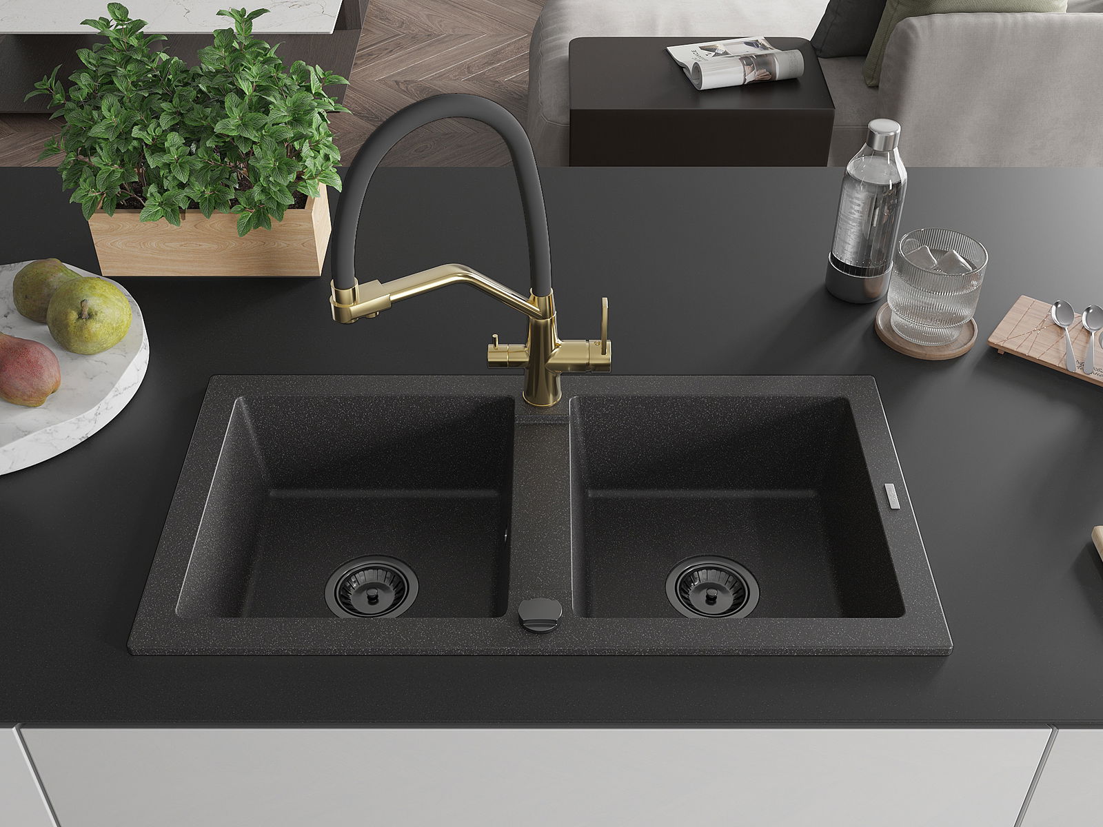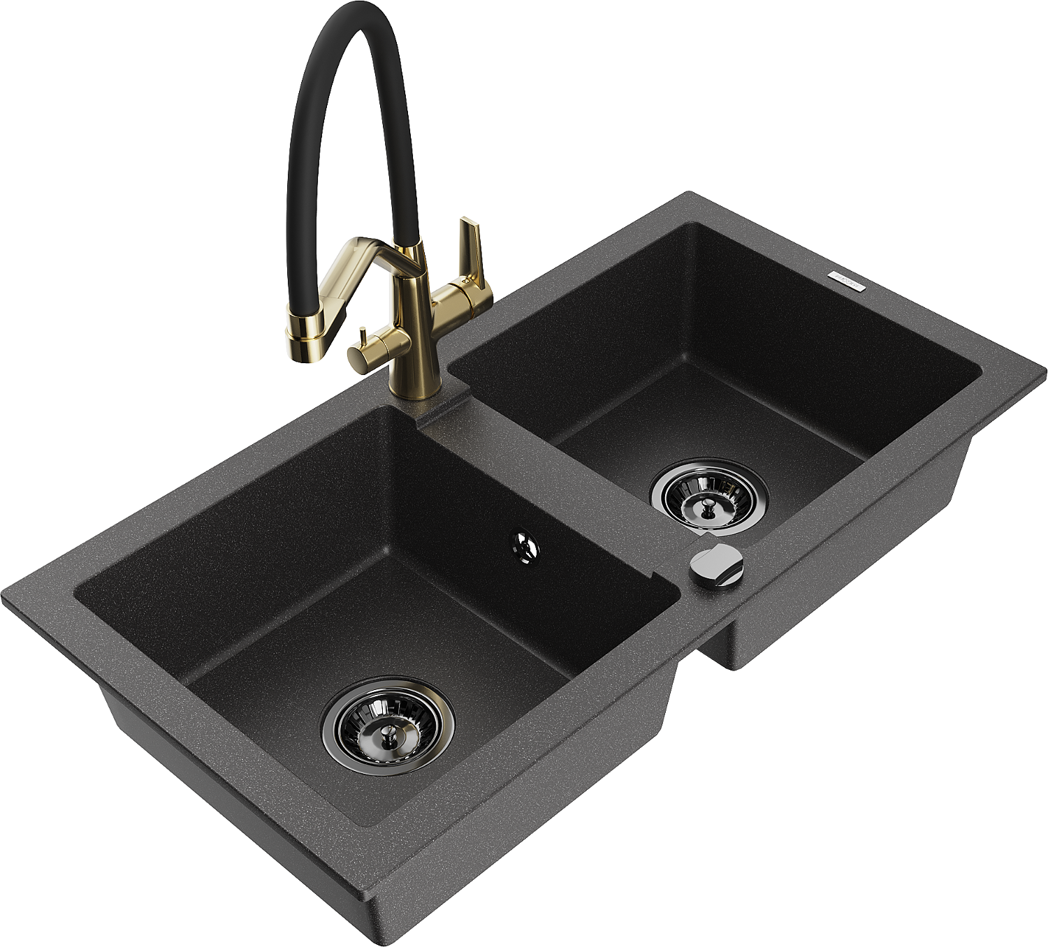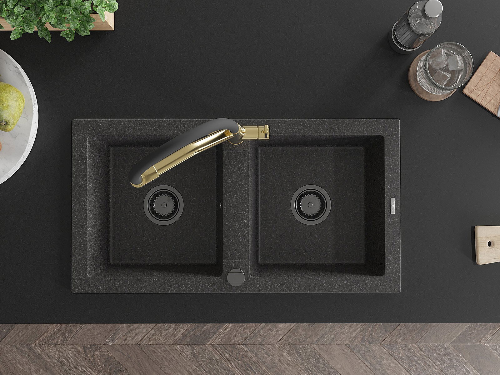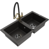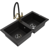 Mexen Mario chiuvetă de granit cu 2 compartimente și baterie de bucătărie Duo, negru picurat - 6504-76-671701-57-B