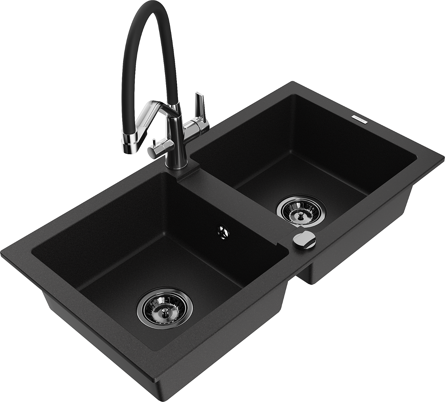 Mexen Mario chiuvetă de granit cu 2 compartimente și baterie de bucătărie Duo, negru - 6504-77-671701-07-B