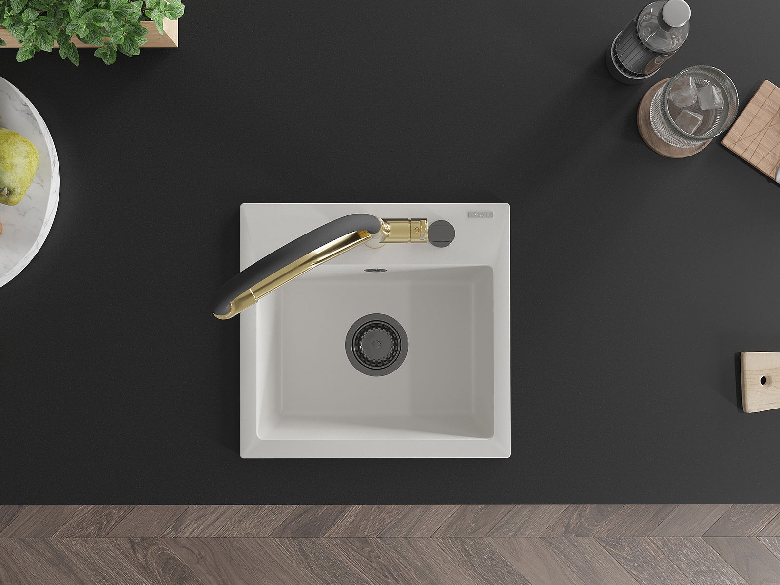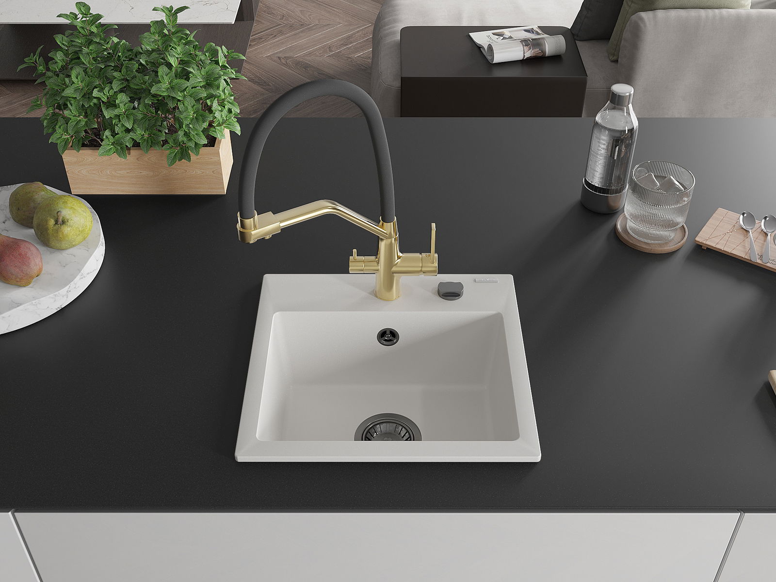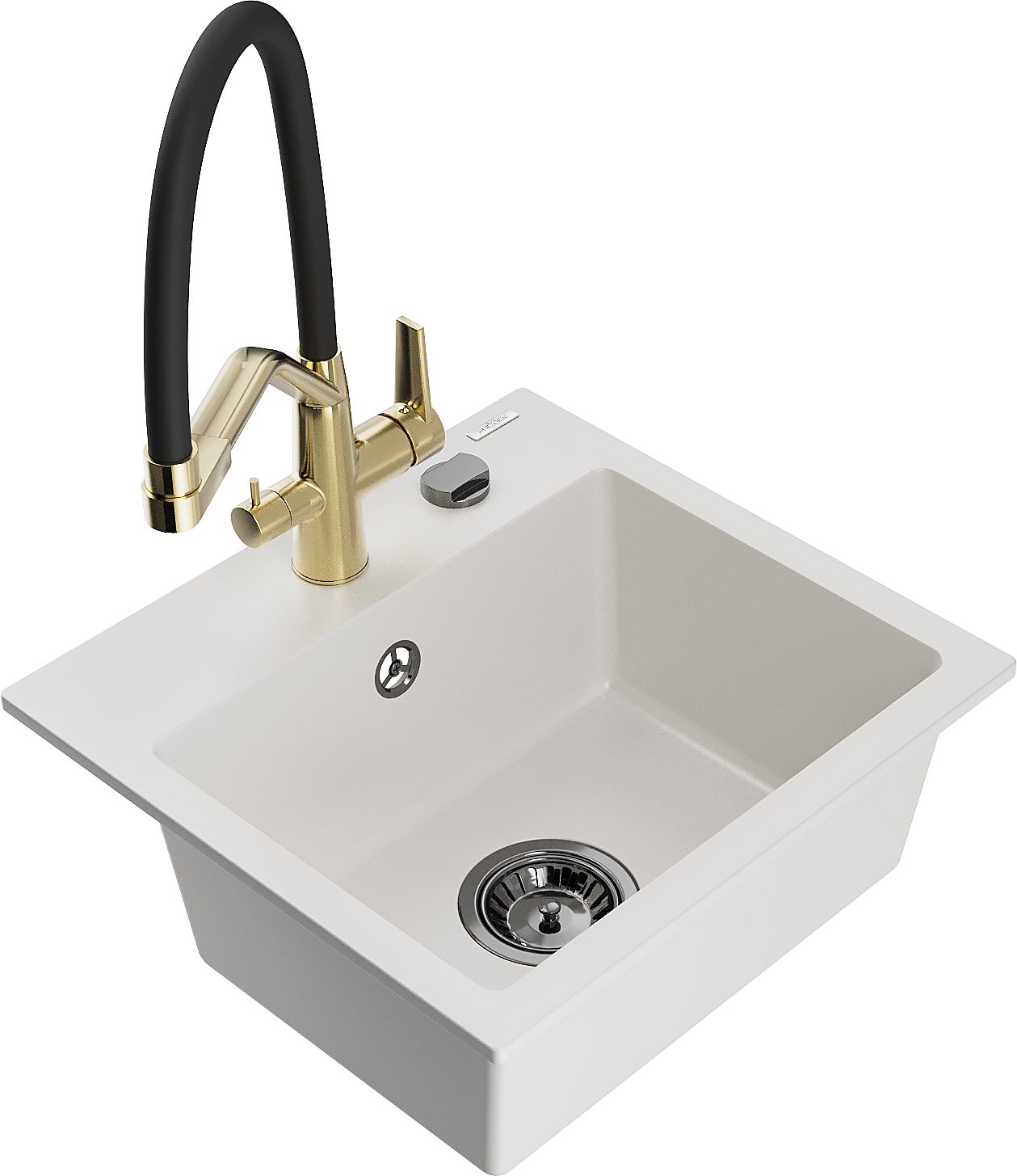 Mexen Milo chiuvetă de bucătărie din granit cu 1 cuvă și baterie Duo, alb - 6505-20-671701-57-B