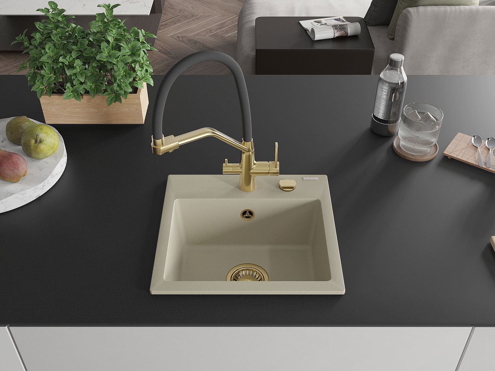 Suprafața chiuvetei este rezistentă la pete și decolorare, ceea ce o face ușor de întreținut și își păstrează culoarea pentru o perioadă lungă de utilizare. Un complet estetic și practic pentru orice bucătărie.