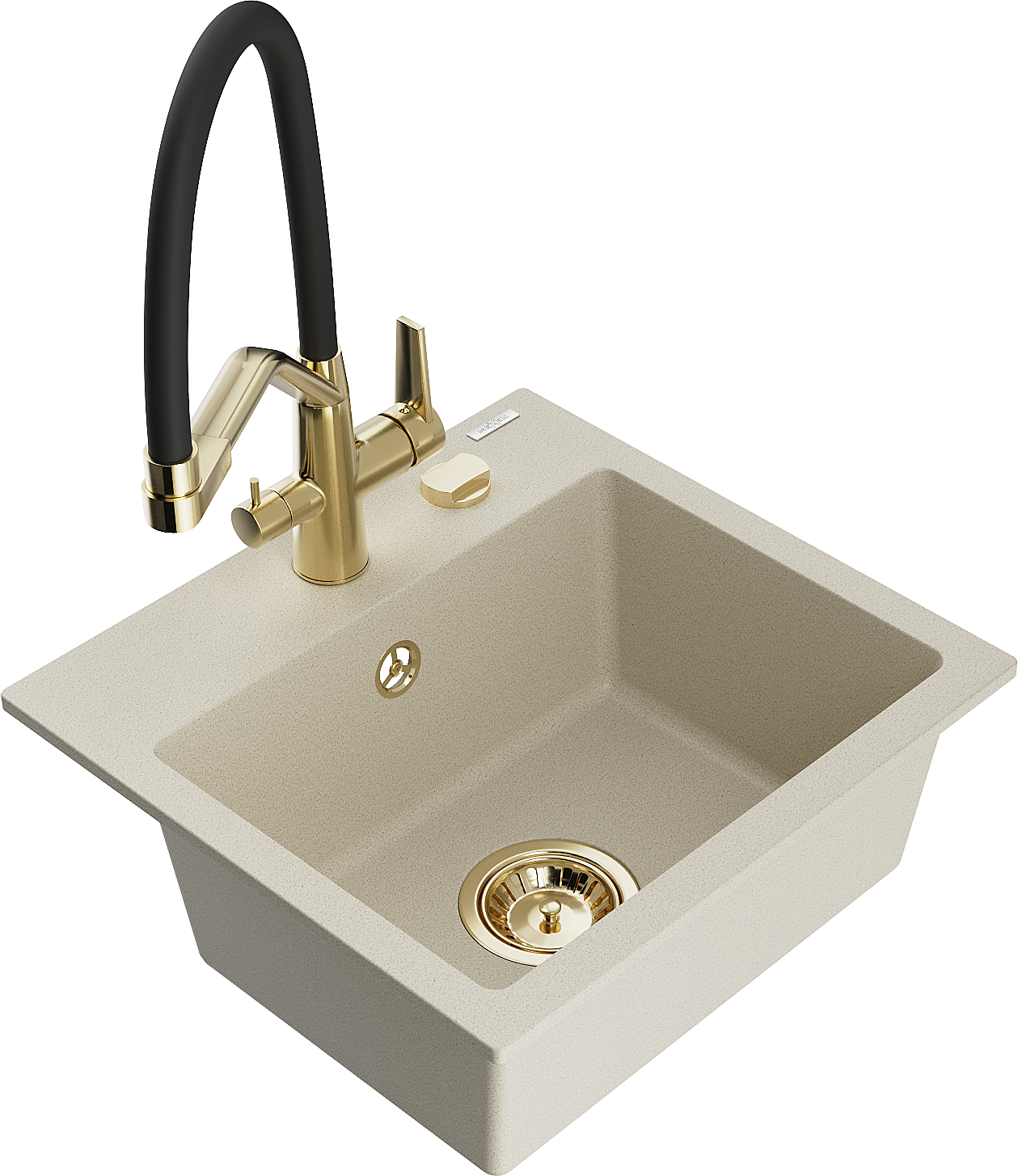 Mexen Milo chiuvetă de bucătărie din granit cu 1 compartiment și baterie de bucătărie Duo, bej - 6505-69-671701-57-G
