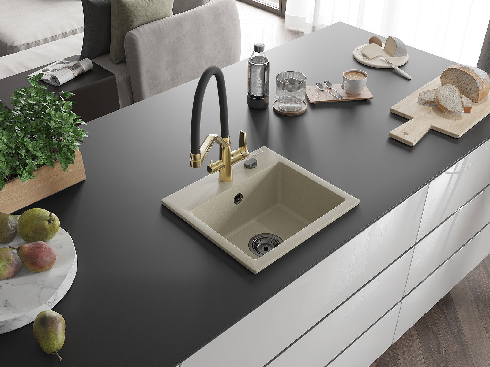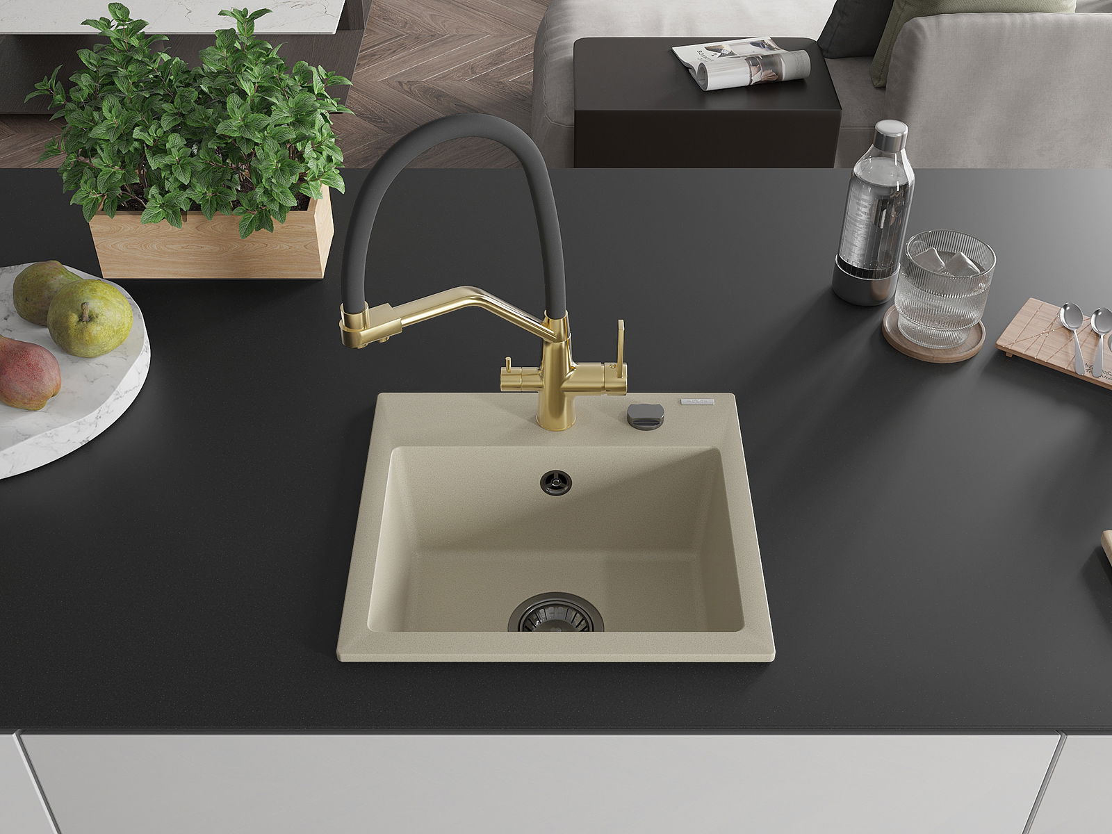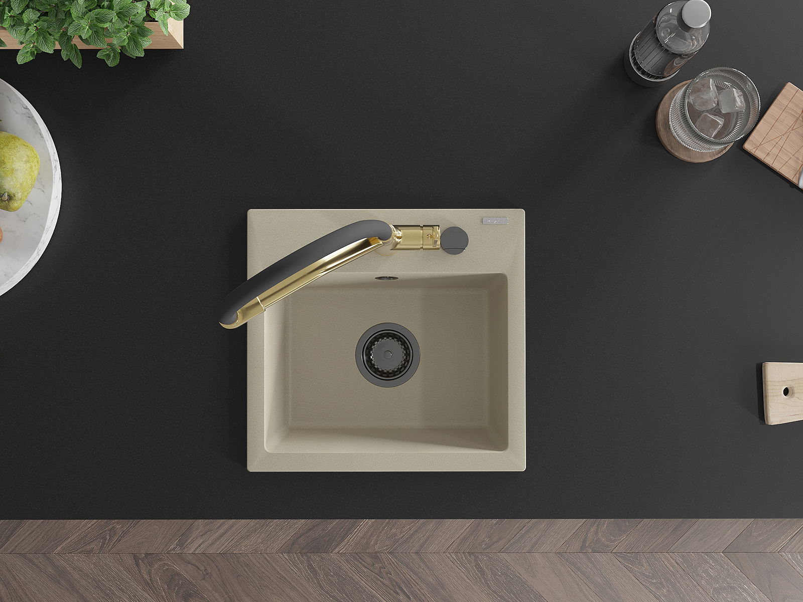 Suprafața chiuvetei este rezistentă la pete și decolorare, ceea ce o face ușor de întreținut și își păstrează culoarea pentru o perioadă lungă de utilizare. Un complet estetic și practic pentru orice bucătărie.