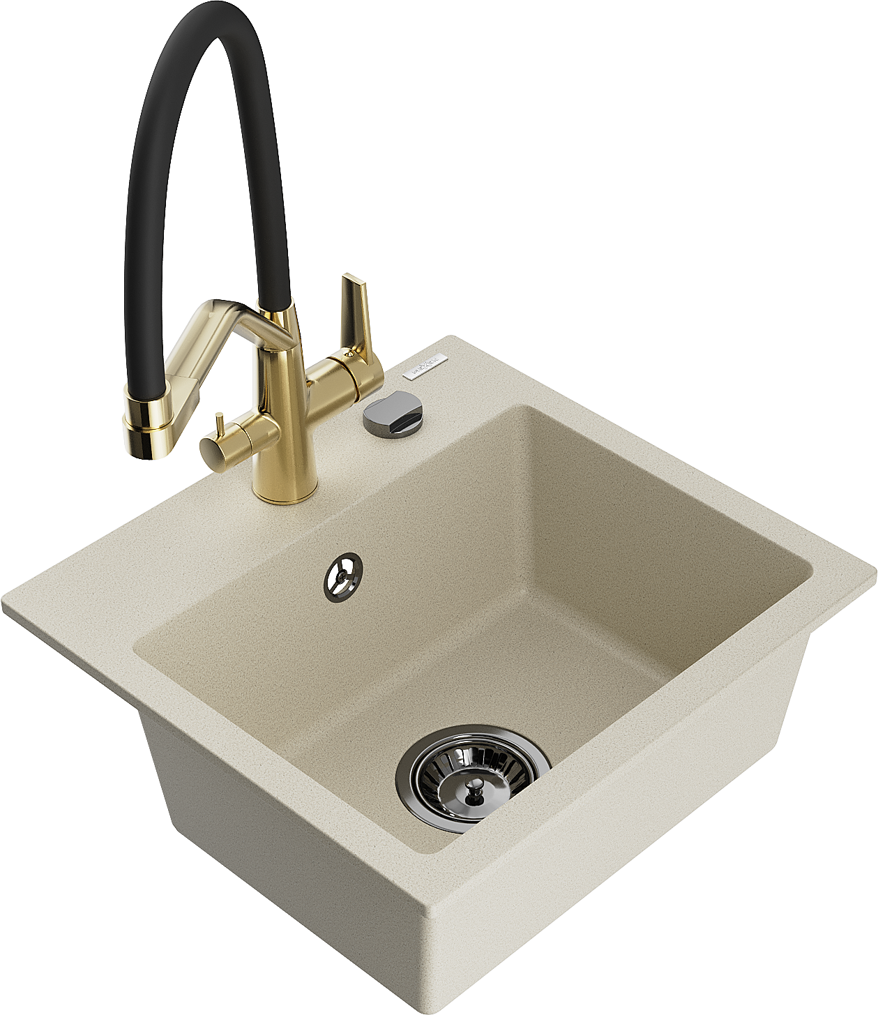 Mexen Milo chiuvetă de granit cu 1 cuvă cu baterie de bucătărie Duo, bej - 6505-69-671701-57-B