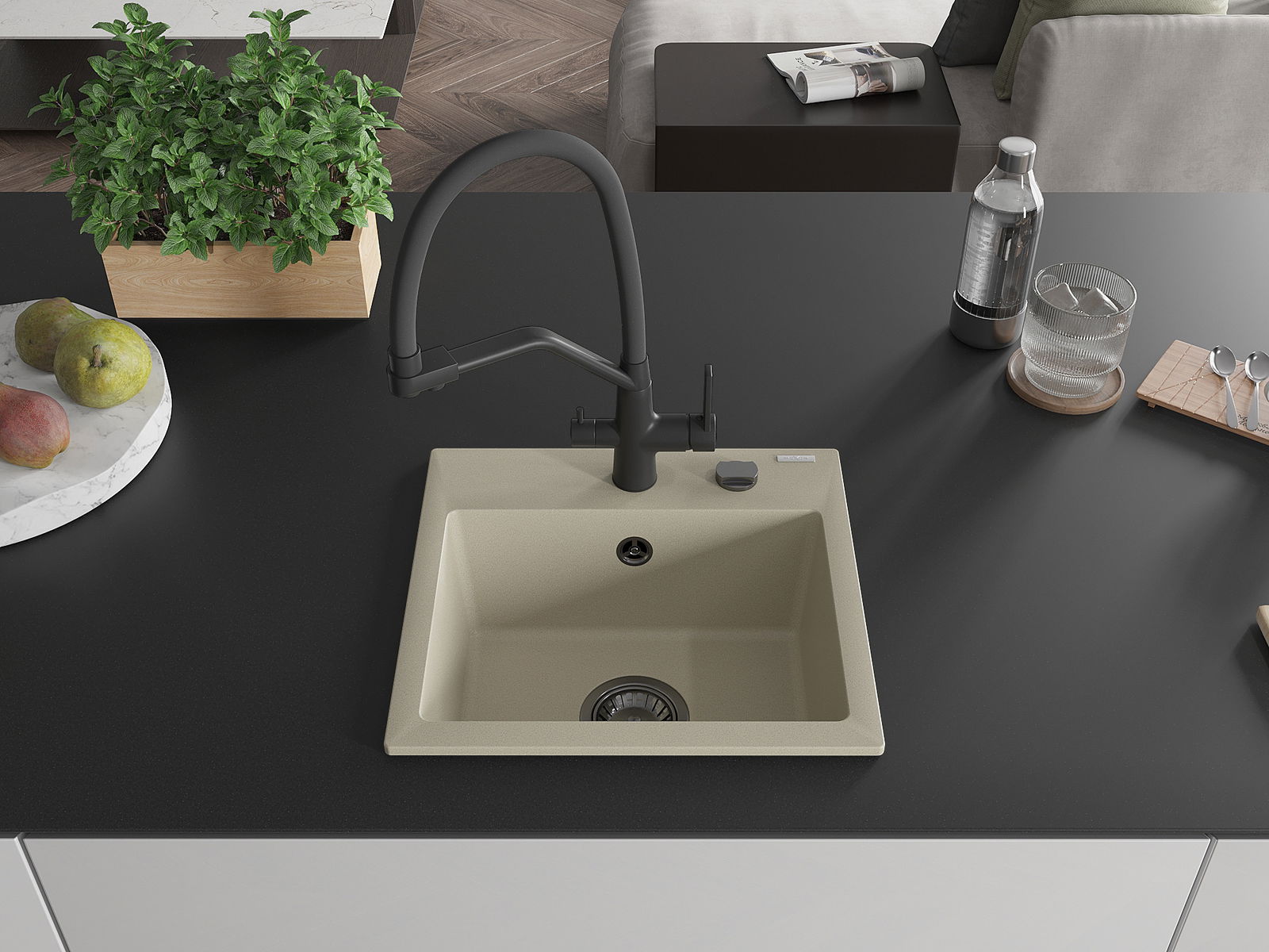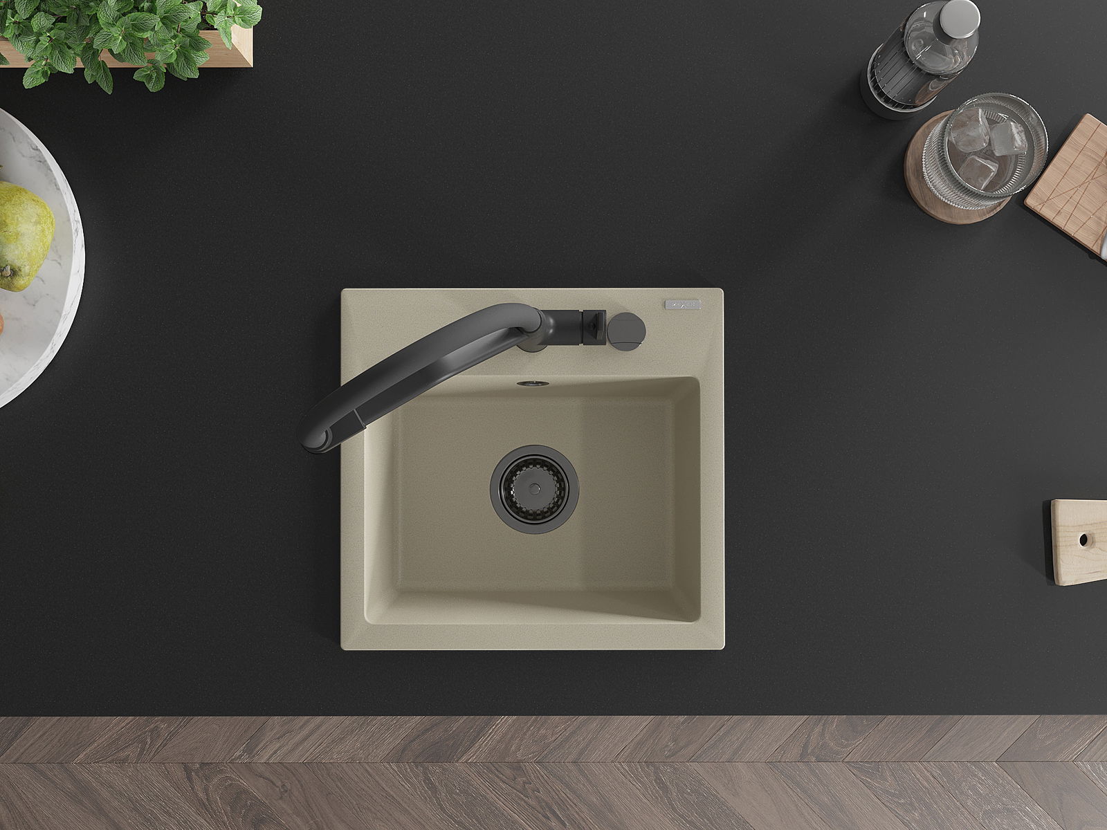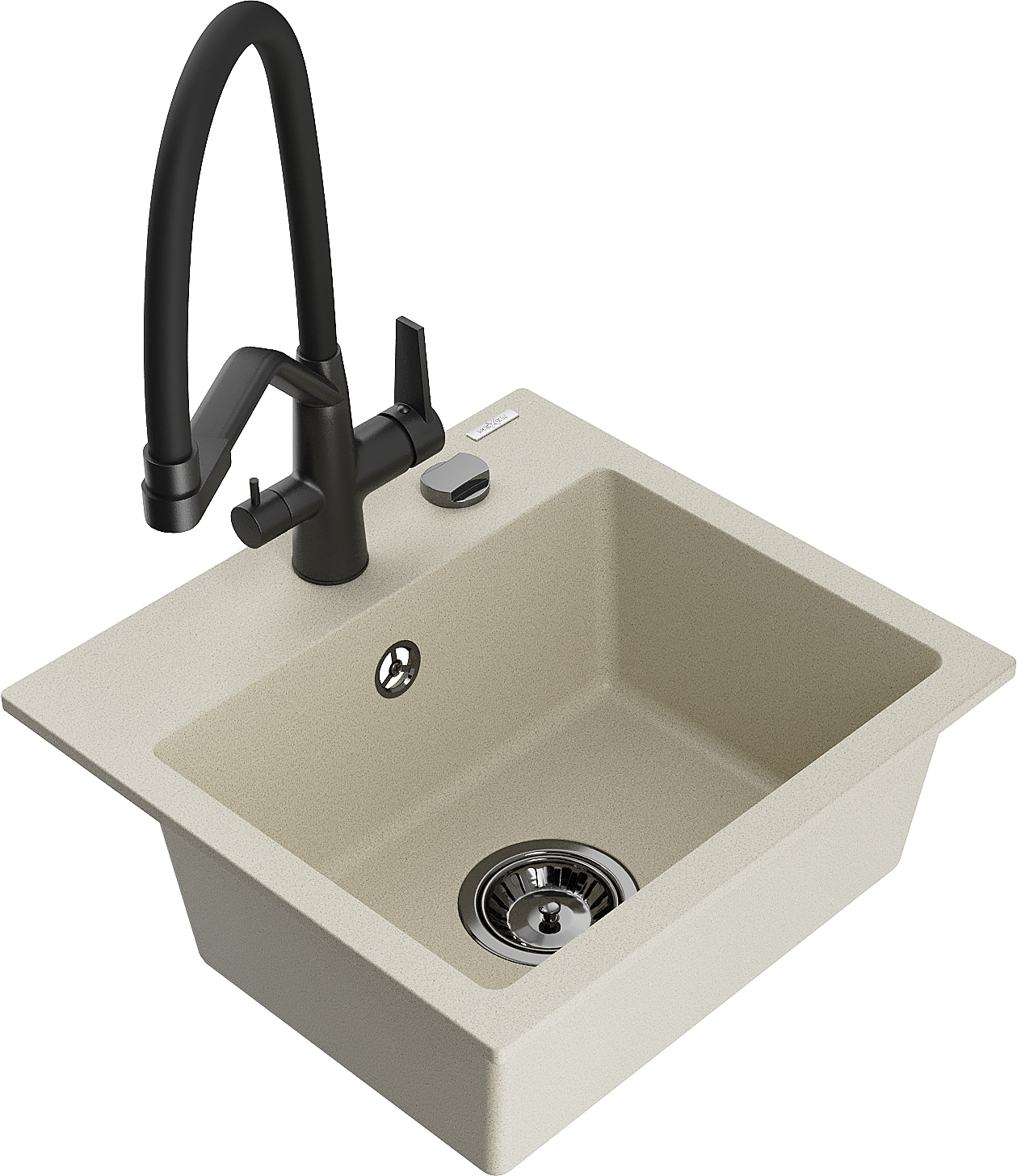 Mexen Milo chiuvetă de granit cu 1-una compartiment și baterie de bucătărie Duo, bej - 6505-69-671701-70-B