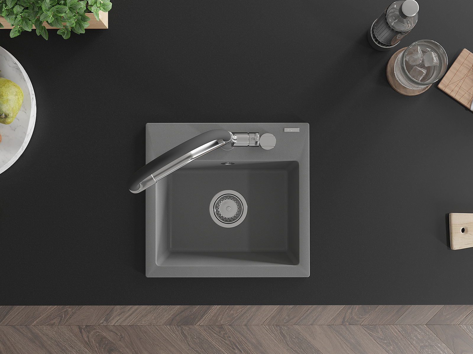 Mexen Milo chiuvetă granit 1-cameră cu baterie de bucătărie Duo, gri - 6505-71-671701-07