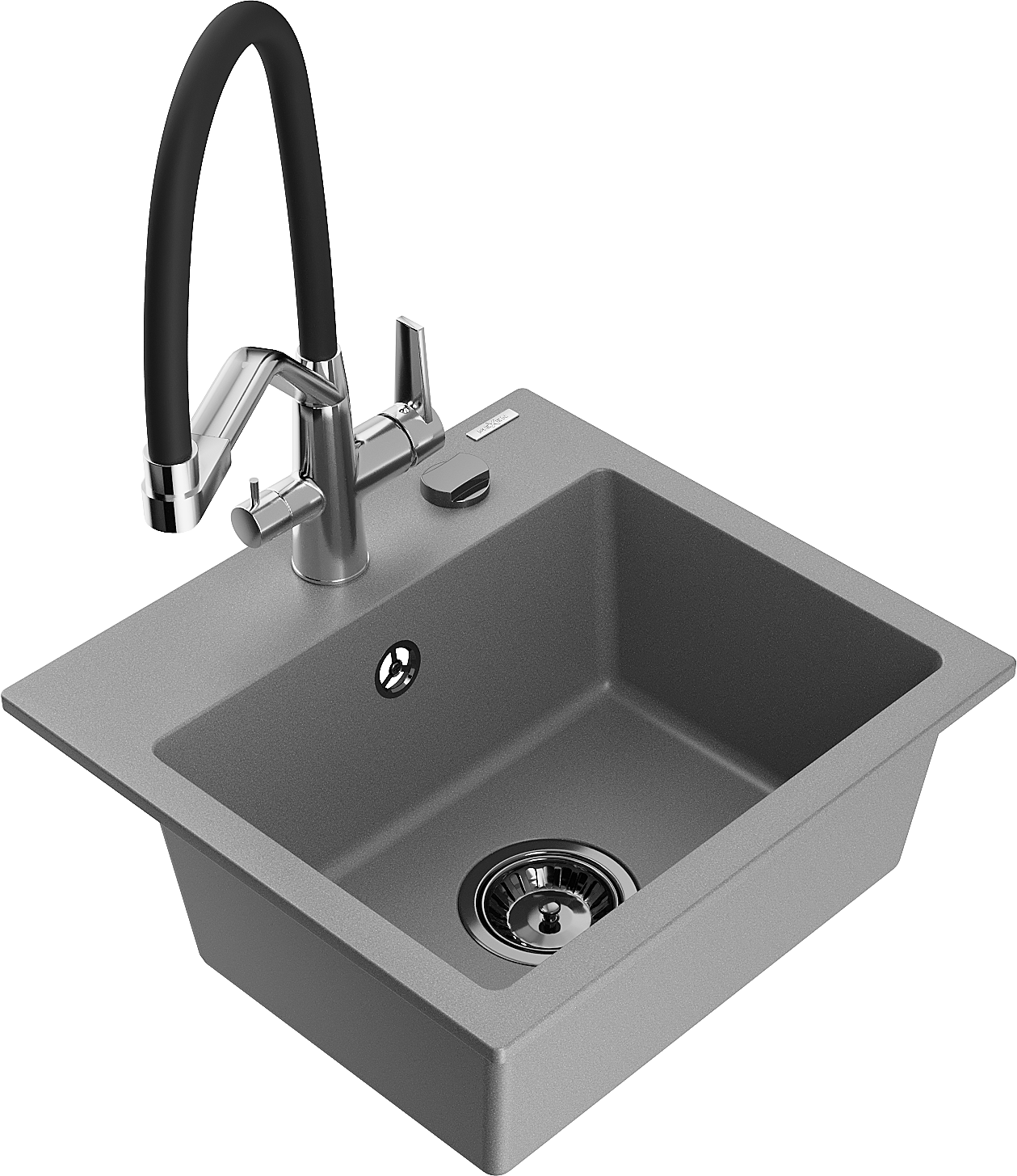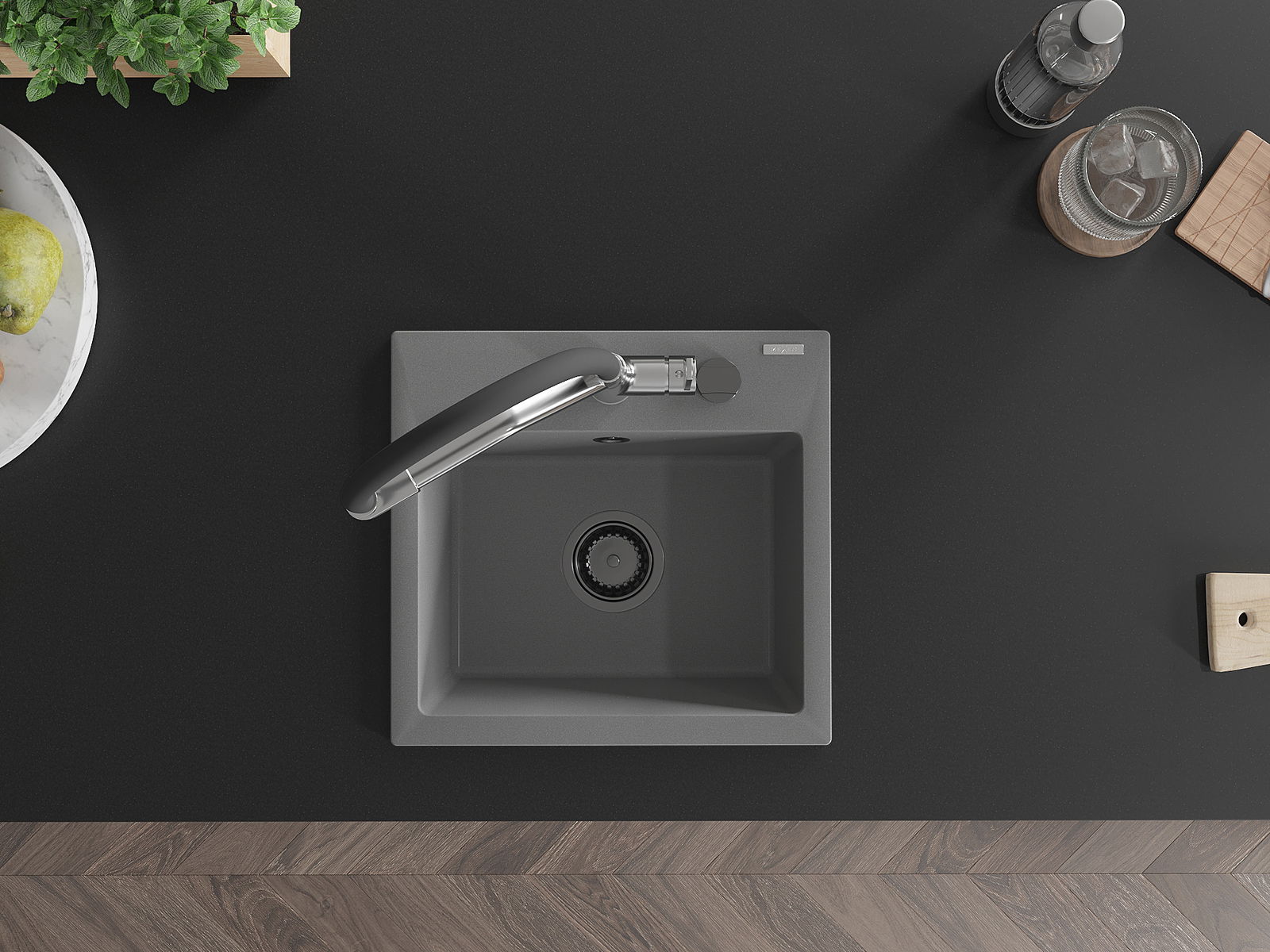 Mexen Milo chiuvetă de bucătărie din granit cu 1 cuvă și baterie Duo, gri - 6505-71-671701-07-B