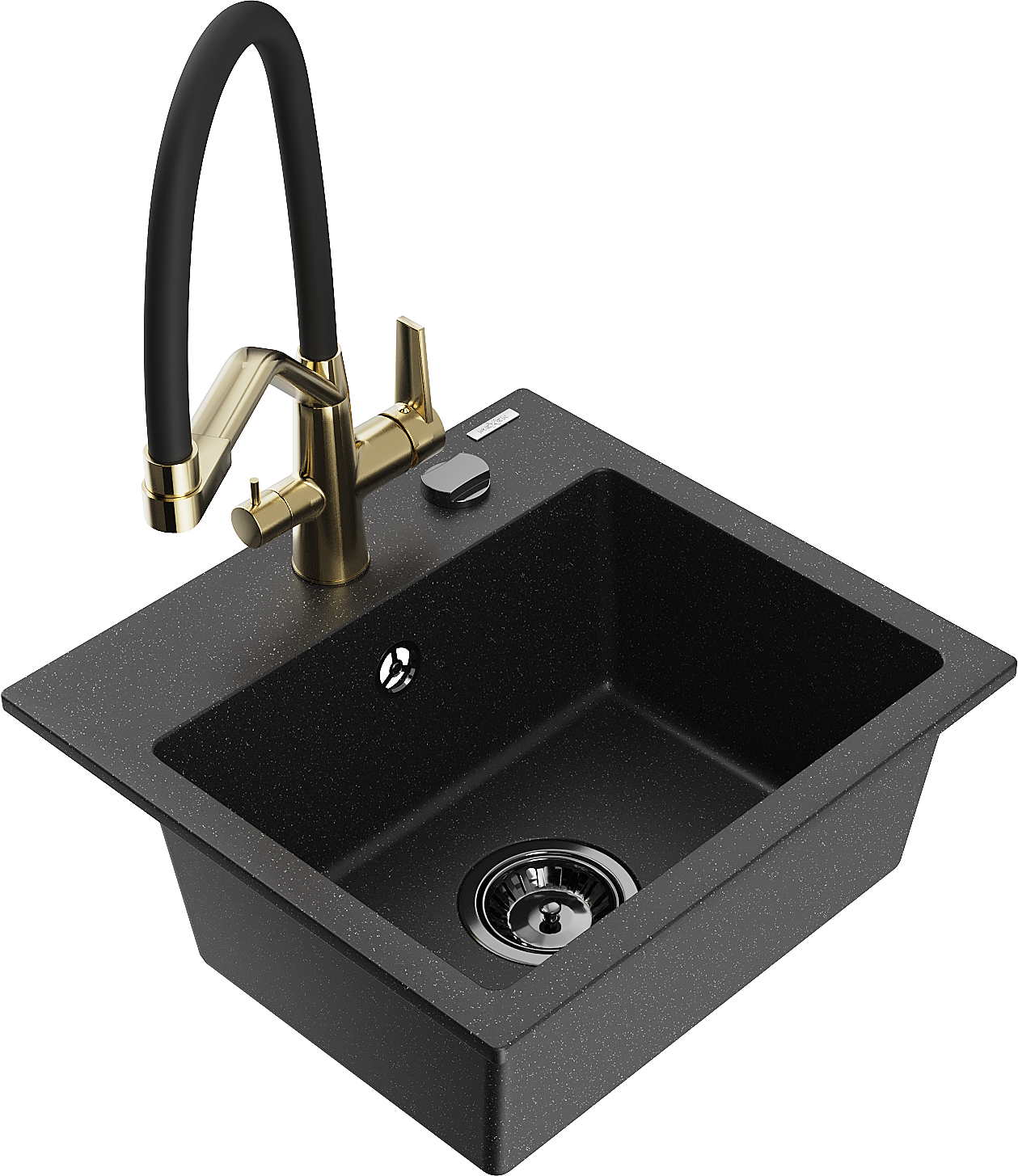 Mexen Milo chiuvetă de bucătărie din granit cu 1 cuvă și baterie Duo, negru/argintiu metalic - 6505-73-671701-57-B