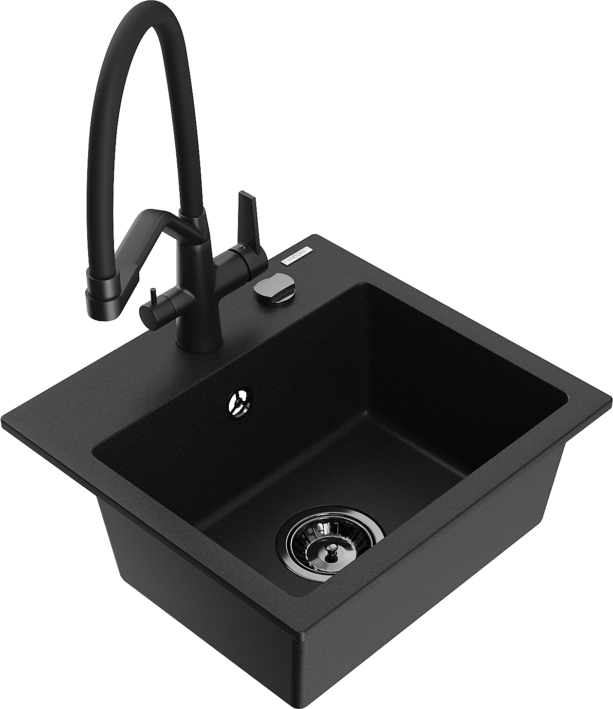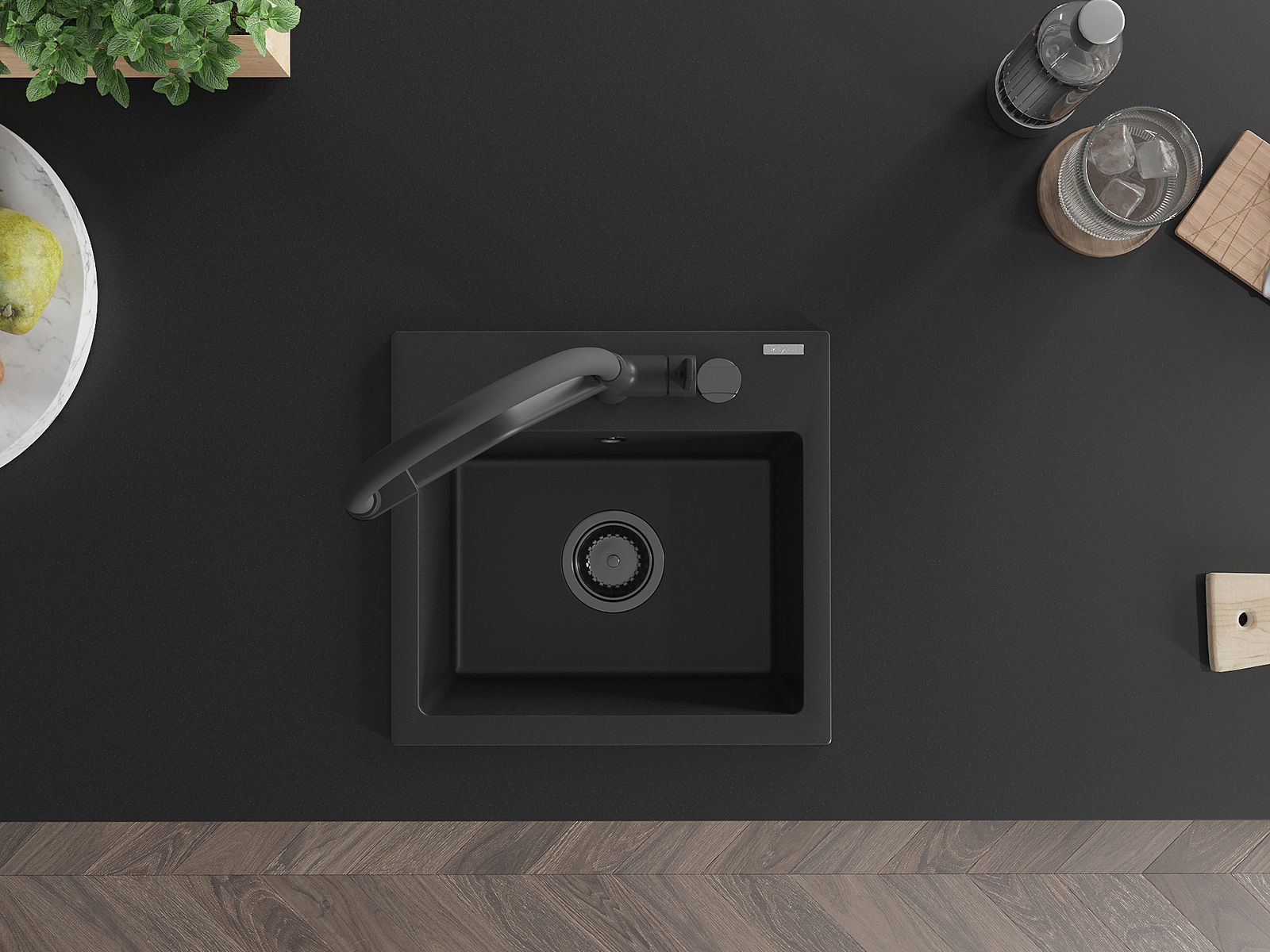 Mexen Milo chiuvetă de bucătărie din granit cu 1 compartiment și baterie Duo, negru - 6505-77-671701-70-B