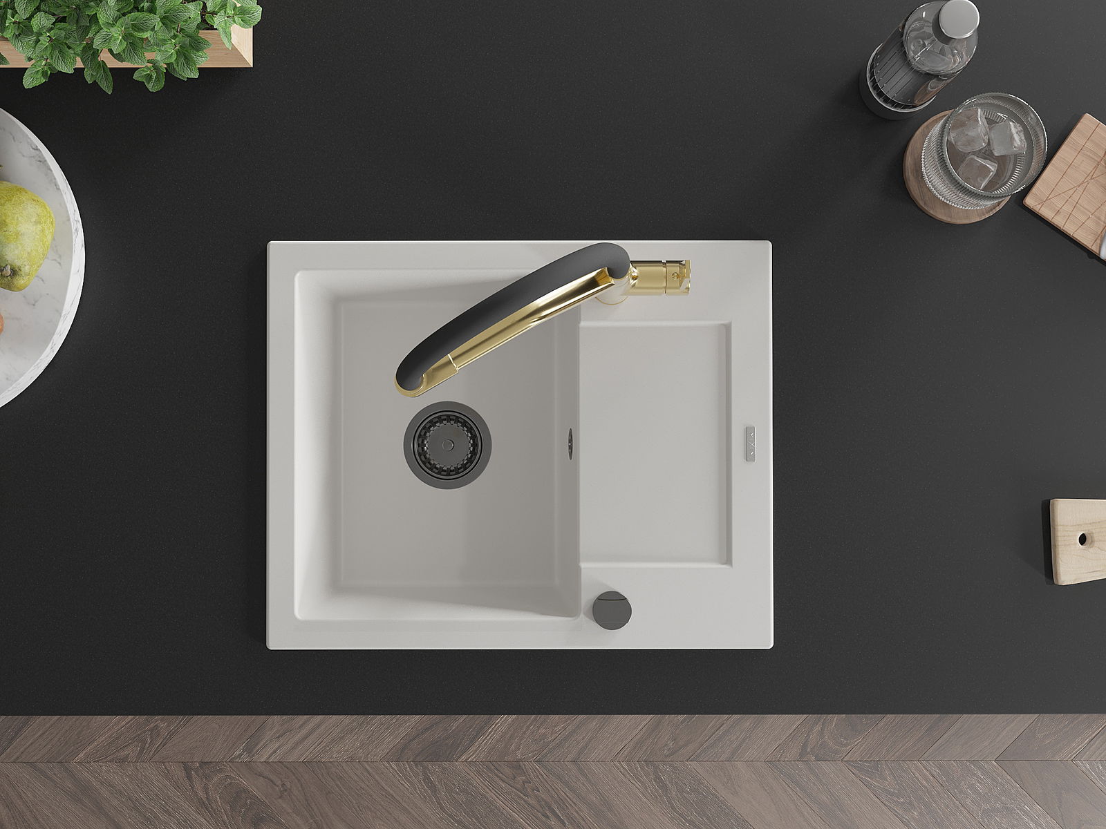 Suprafața chiuvetei este rezistentă la pete și decolorarea, datorită căreia este ușor de curățat și își păstrează culoarea mult timp. Estetică și practic completarea fiecărei bucătării.