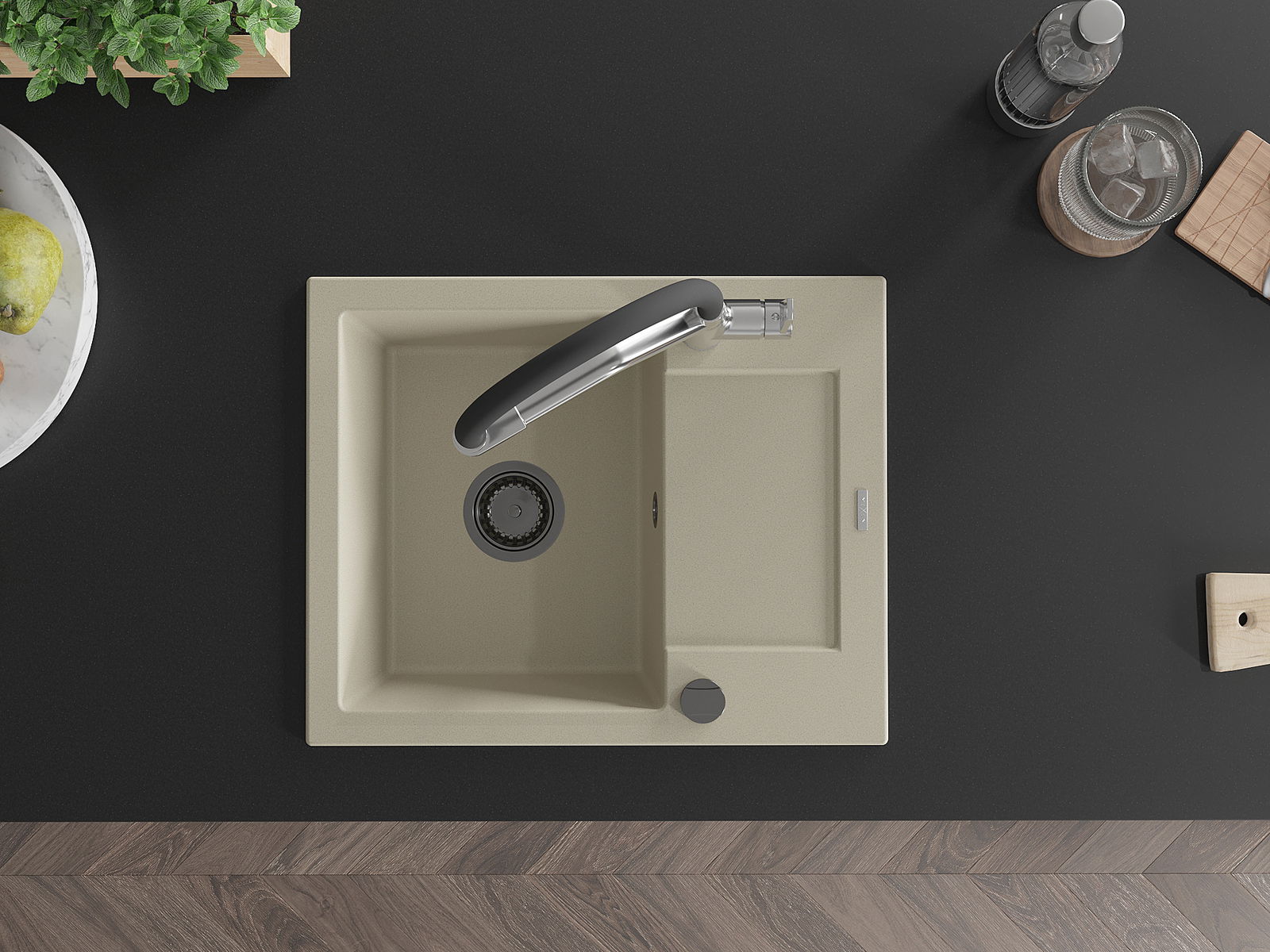 Mexen Enzo chiuvetă de granit cu 1 compartiment, cu picurător și baterie de bucătărie Duo, bej - 6506-69-671701-07-B