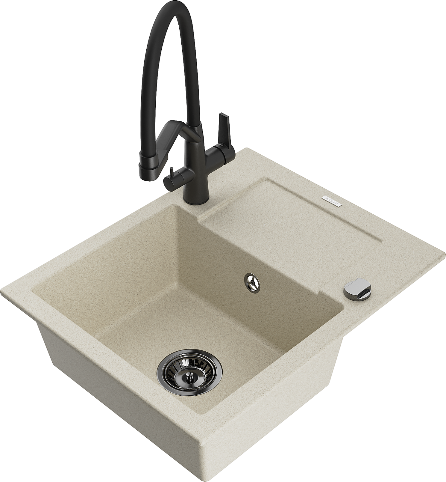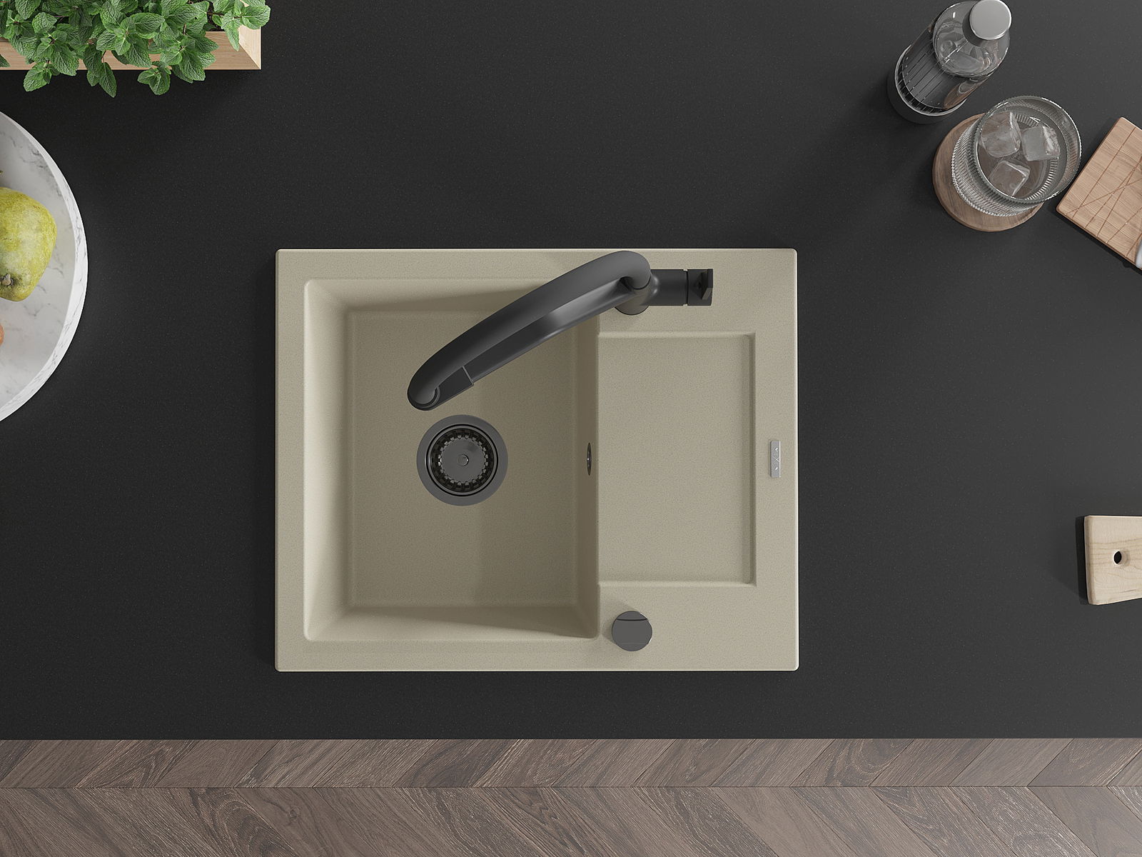 Mexen Enzo chiuvetă de granit cu 1 compartiment cu scurgător și baterie de bucătărie Duo, bej - 6506-69-671701-70-B