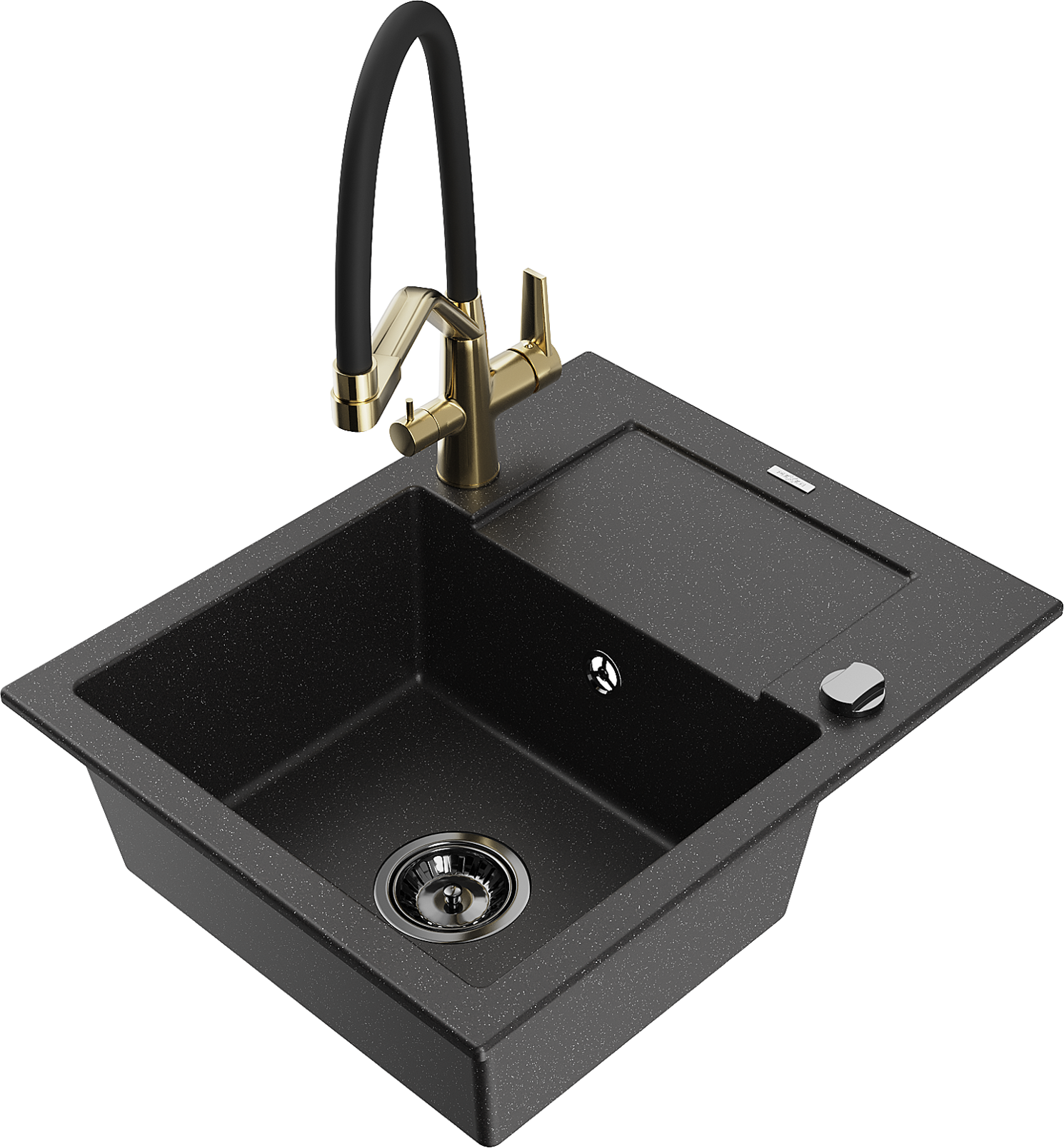 Mexen Enzo chiuvetă de bucătărie din granit cu 1 cuvă cu picurător și baterie de bucătărie Duo, negru/argintiu metalic - 6506-7?