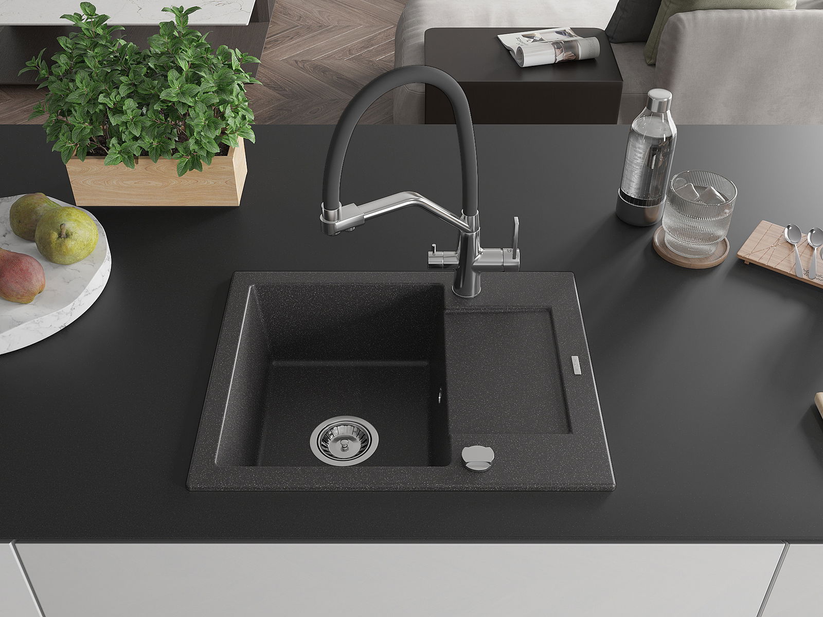 Chiuveta a fost realizată din granit de înaltă calitate. Reprezintă un complement elegant și, mai presus de toate, practic pentru orice bucătărie, indiferent de stilul acesteia. Calitatea înaltă și durabilitatea granitului asigură o utilizare de lungă durată.