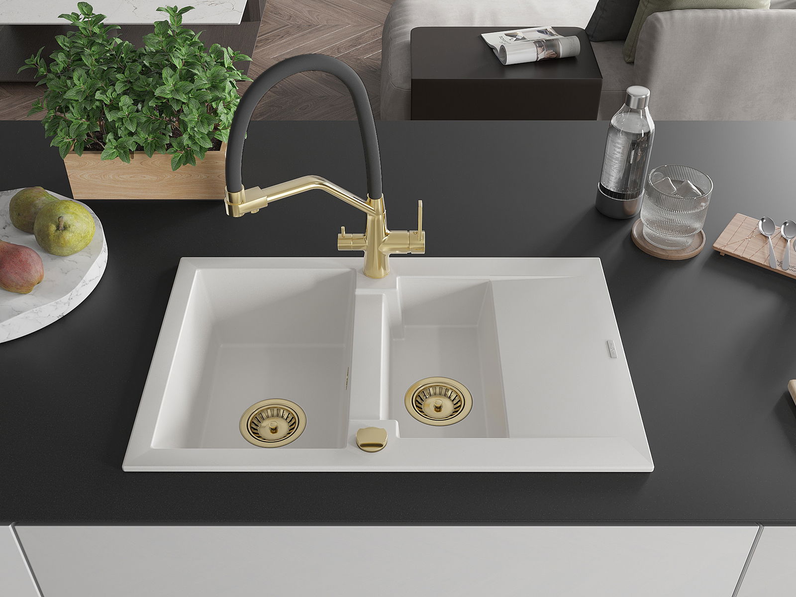 Suprafața chiuvetei este rezistentă la pete și decolorarea, datorită căreia este ușor de curățat și își păstrează culoarea mult timp. Estetică și practic completarea fiecărei bucătării.