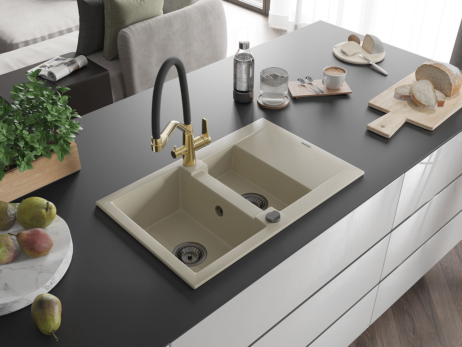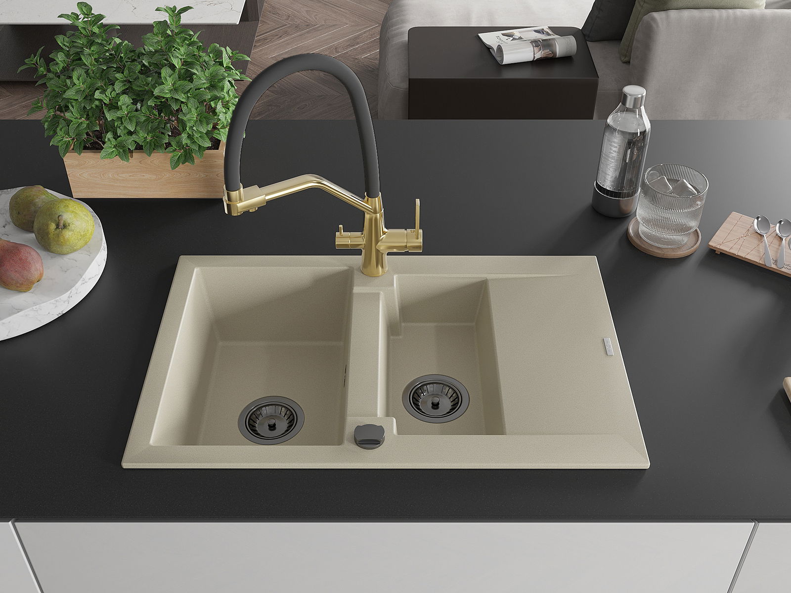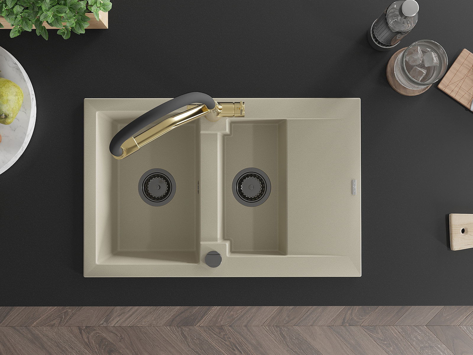 Suprafața chiuvetei este rezistentă la pete și decolorarea, datorită căreia este ușor de curățat și își păstrează culoarea mult timp. Estetică și practic completarea fiecărei bucătării.