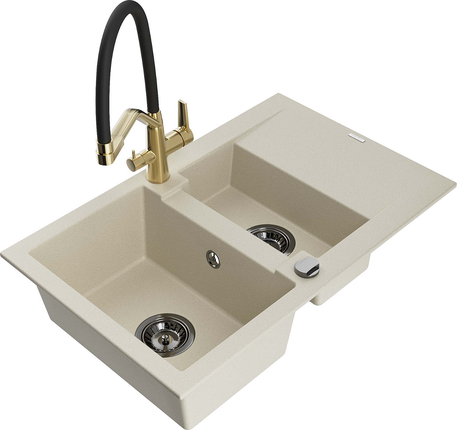 Mexen Gaspar chiuvetă de granit cu 1,5 cuve cu scurgător și baterie de bucătărie Duo, bej - 6507-69-671701-57-B