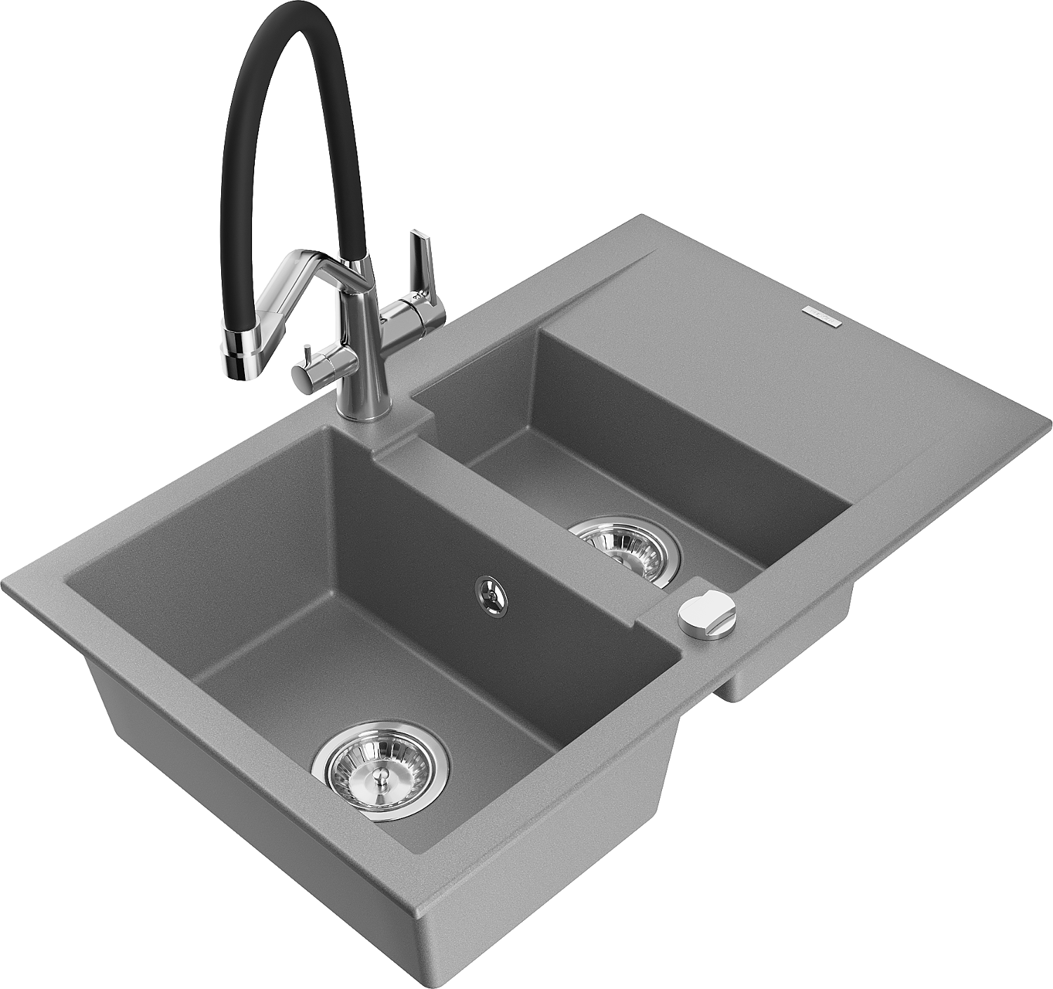 Mexen Gaspar chiuvetă de bucătărie din granit cu 1,5 compartimente și baterie Duo, gri - 6507-71-671701-07